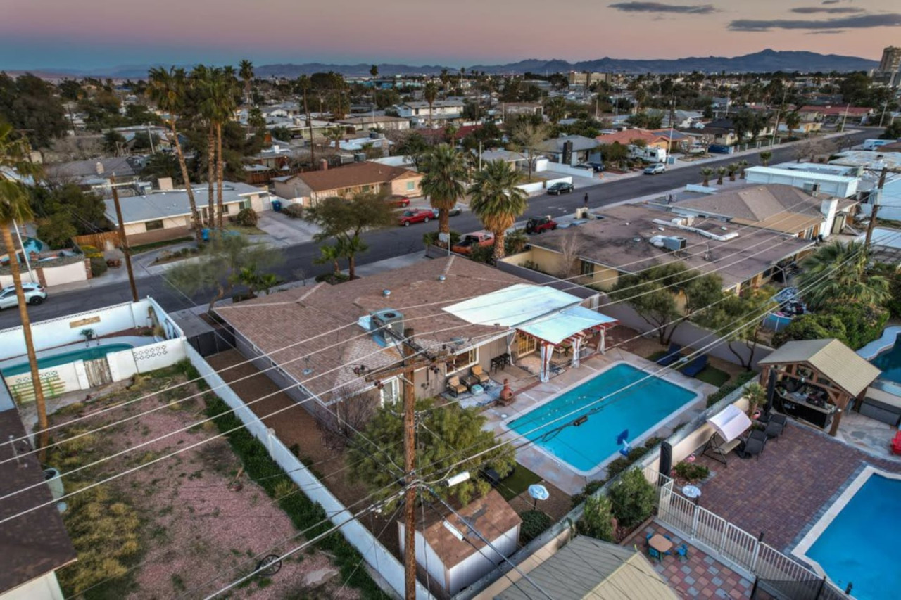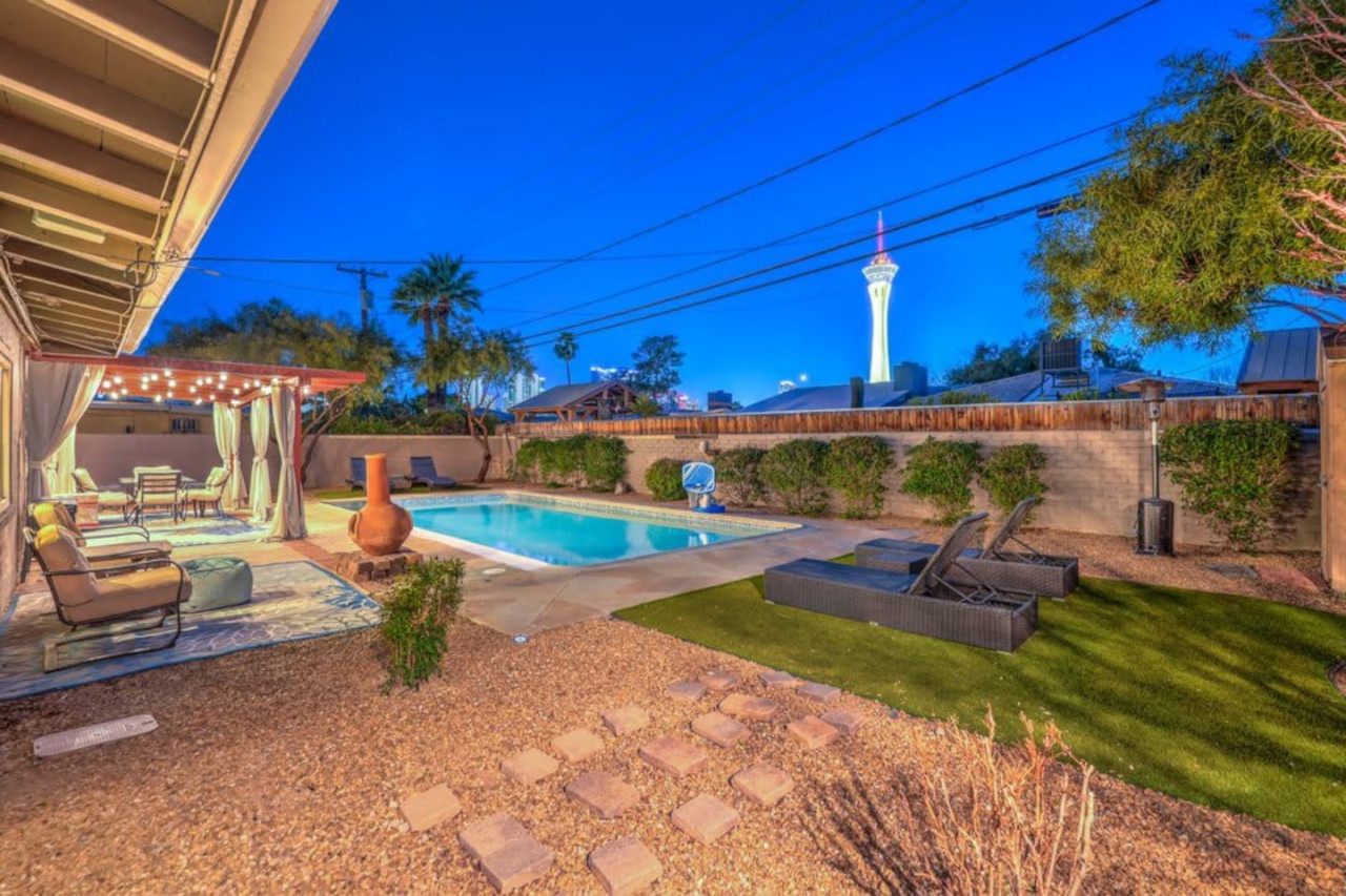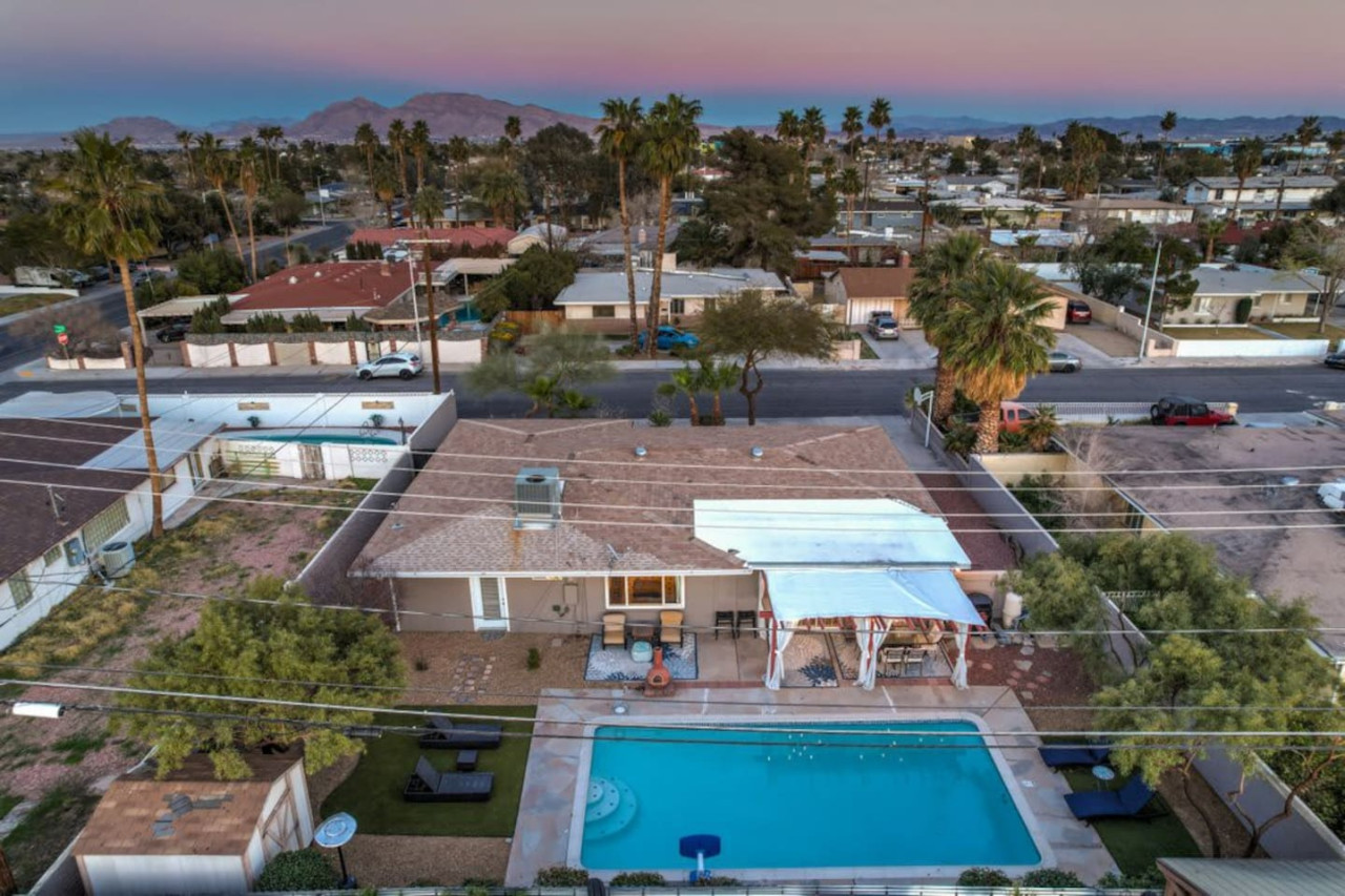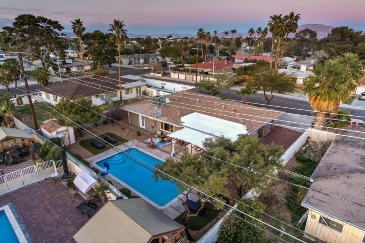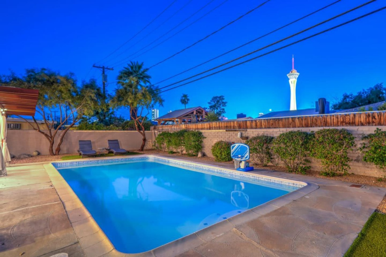/ nightDive into comfort and style with our single-story, 3-bedroom with a "Bonus Room", 2-bath home in the vibrant heart of Las Vegas. Enjoy: ☞ Furnished Mid-Term Rental for Longer Stays ☞ 1,624 sq feet| 150.9 sq meters ☞ Spacious Individual Bedrooms ☞ 2 Queen Beds, 2 King Beds ☞ Historic Hunttridge Neighborhood. Prime Location:* Under a mile to Downtown's shops, restaurants, and arts district ☞ Private Swimming Pool Huge pool and secluded backyard with patio. (Please Note the Pool is Not Heated) Guests are required sign a Guest Rental Agreement upon booking. * We have security cameras facing the street and in the front door. * We have noise monitoring device in the backyard and in the living room. These devices only records the decibels to monitor noise level during quiet hours but NO audio recording. *The fridge is not connected to a waterline due to leak risks. If you need an ice tray, we'll have one delivered within 24 hours. *The mailbox access or keys are not provided unless the guest has a lease agreement. All of them are on 24/7 and for security purposes. There is no camera in private area or anywhere inside the house. Security cameras solely facing the street (as required by the City)