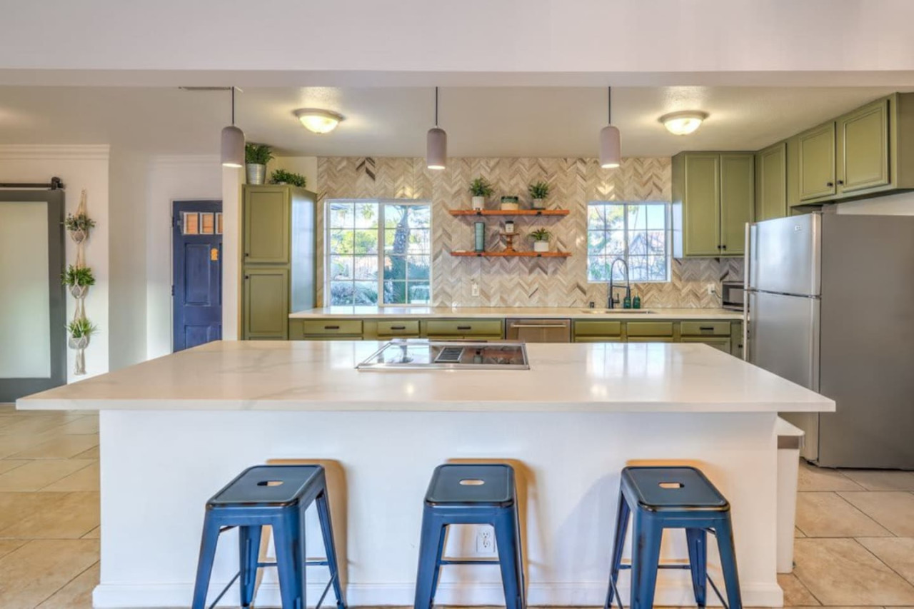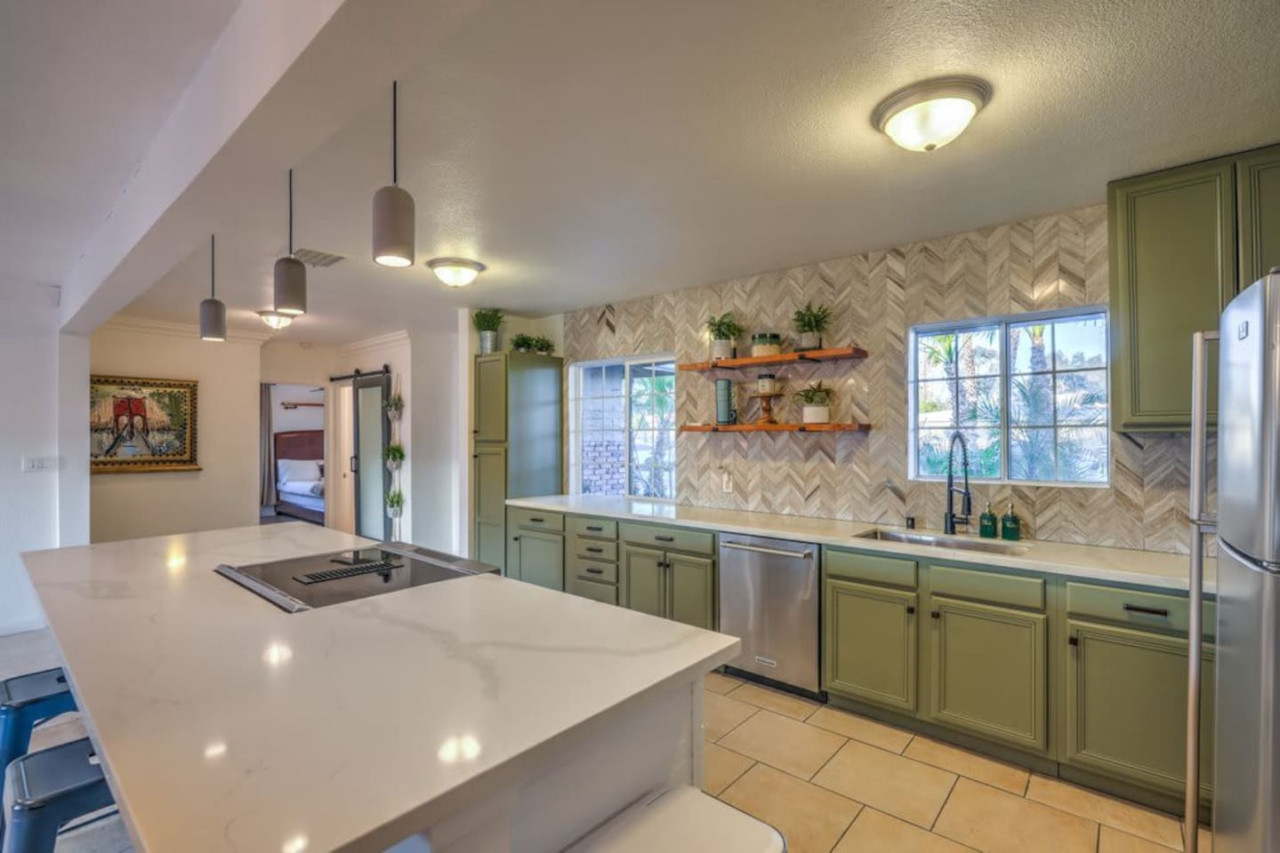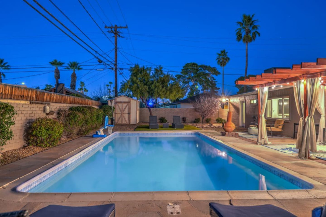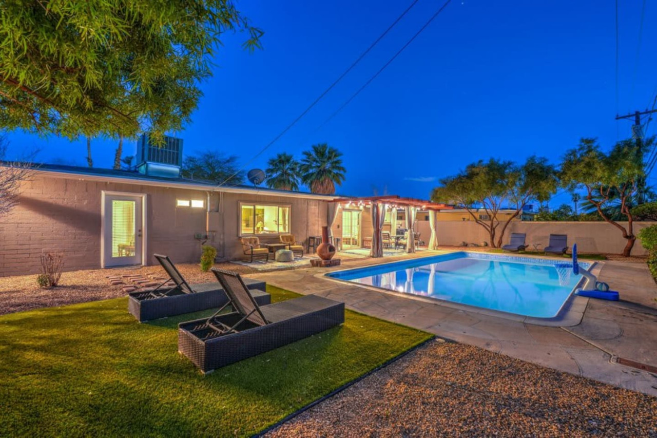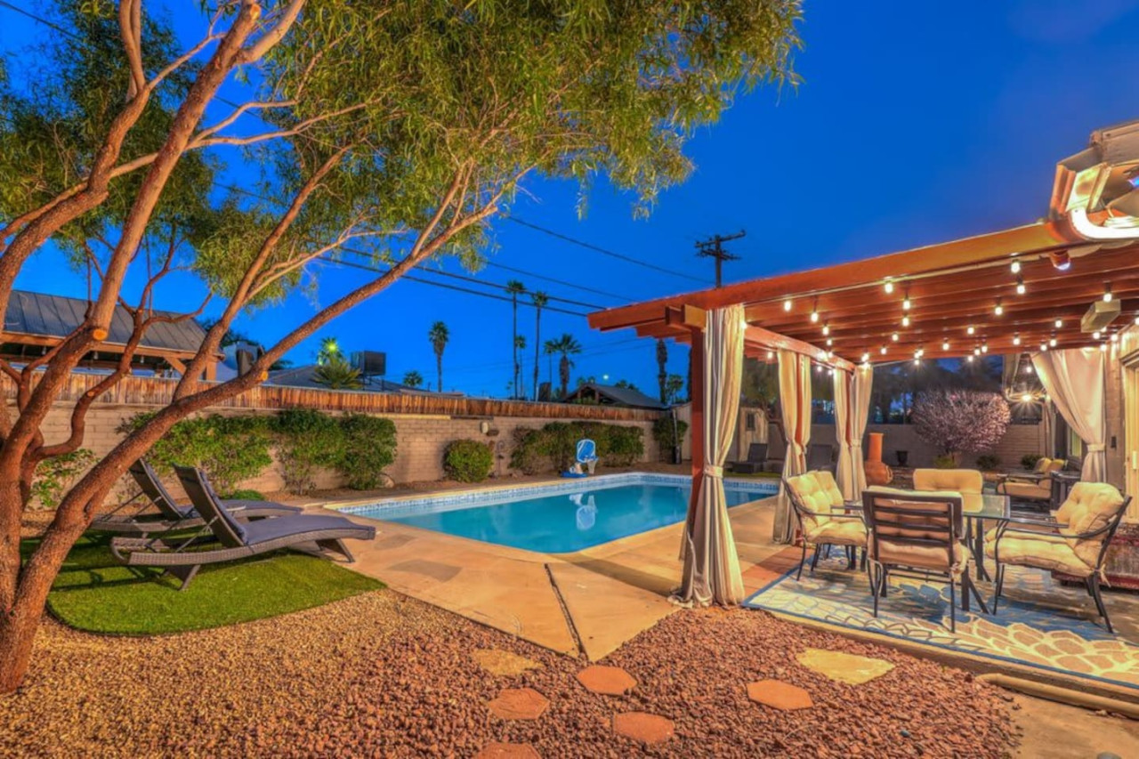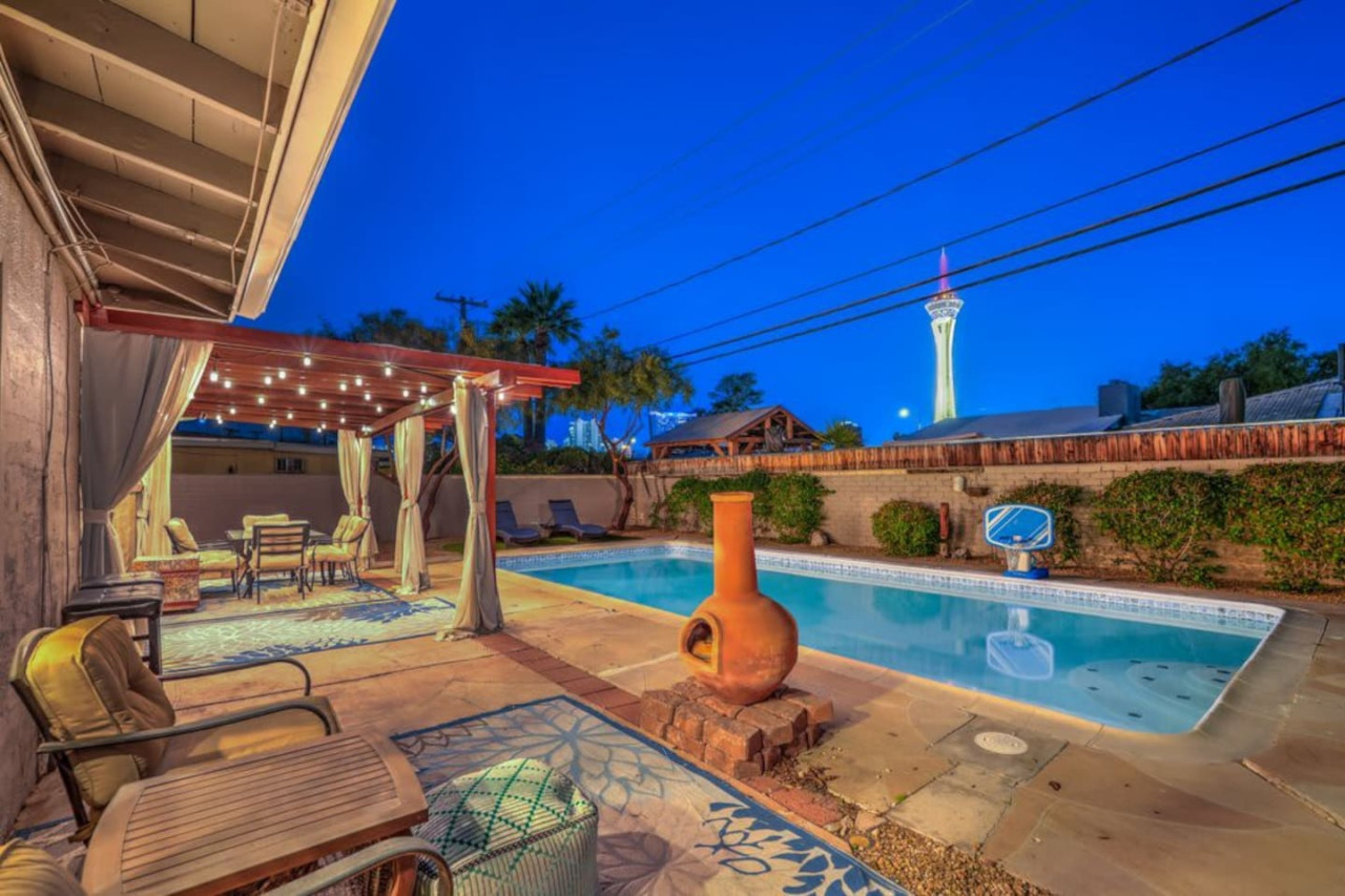 / nightDive into comfort and style with our single-story, 3-bedroom with a "Bonus Room", 2-bath home in the vibrant heart of Las Vegas. Enjoy: ☞ Furnished Mid-Term Rental for Longer Stays ☞ 1,624 sq feet| 150.9 sq meters ☞ Spacious Individual Bedrooms ☞ 2 Queen Beds, 2 King Beds ☞ Historic Hunttridge Neighborhood. Prime Location:* Under a mile to Downtown's shops, restaurants, and arts district ☞ Private Swimming Pool Huge pool and secluded backyard with patio. (Please Note the Pool is Not Heated) Guests are required sign a Guest Rental Agreement upon booking. * We have security cameras facing the street and in the front door. * We have noise monitoring device in the backyard and in the living room. These devices only records the decibels to monitor noise level during quiet hours but NO audio recording. *The fridge is not connected to a waterline due to leak risks. If you need an ice tray, we'll have one delivered within 24 hours. *The mailbox access or keys are not provided unless the guest has a lease agreement. All of them are on 24/7 and for security purposes. There is no camera in private area or anywhere inside the house. Security cameras solely facing the street (as required by the City)