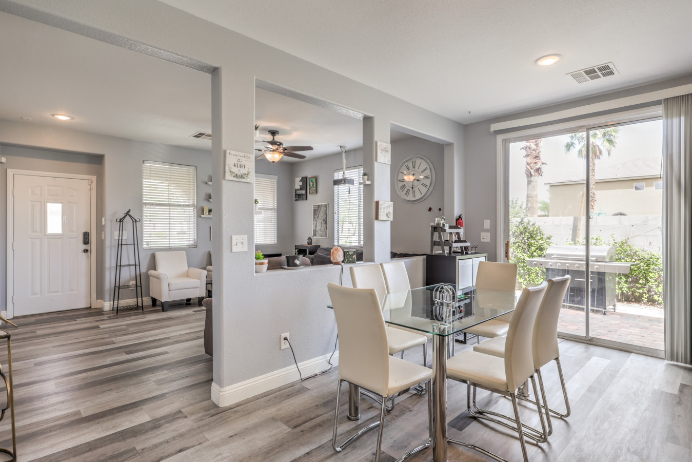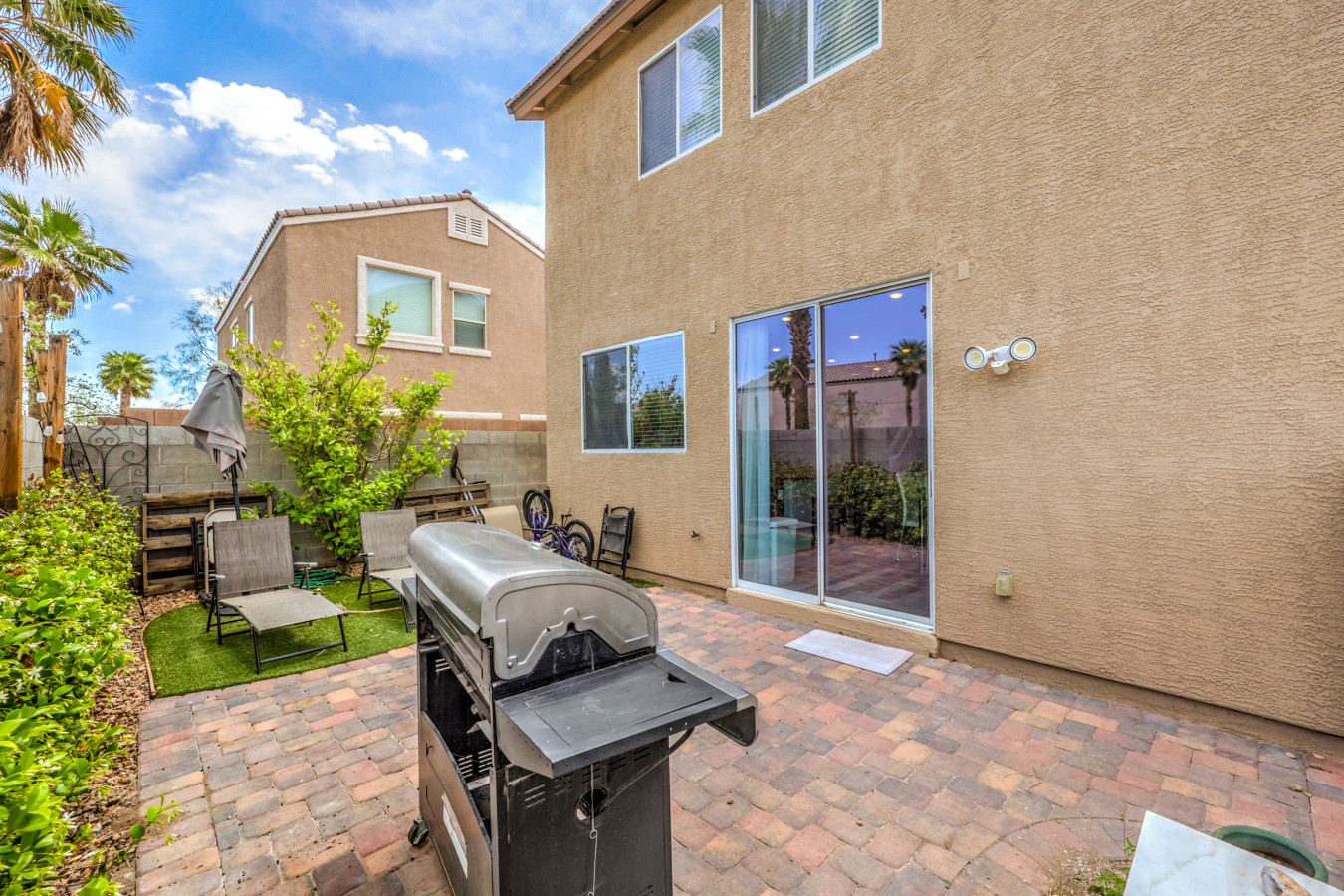 / night☞ 1,558 sq feet | 144.7 sq meters ☞ 3 private bedrooms ☞ 2.5 bathrooms ☞ Community Park ☞ Private yard with BBQ ☞ 20 minutes to Las Vegas Strip ☞ 15 minutes to Airport ☞ 15 minutes to Allegiant Stadium This fully furnished and well decorated property boasts all of the comforts of home, including a fully equipped modern kitchen, spacious open concept living areas, and comfortable sleeping accommodations. Gather with friends and family in the backyard oasis, complete with a sparkling pool and barbecue grill, or unwind in the primary suite with king bed and en-suite bathroom. Plus, with convenient access to all of the top attractions and activities Las Vegas has to offer, you'll never run out of things to do during your stay. Book your escape to our Las Vegas home today and experience the ultimate in relaxation and entertainment! **** DISCLOSURES***** 1) Guests are required to sign a "Guest Rental Agreement" upon booking. 2) We have security cameras facing the street and in the front door. 3) The mailbox access or keys are not provided unless the guest has a lease agreement.
