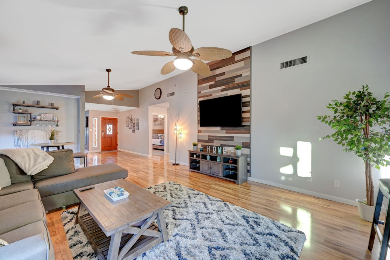 February 2025 5.00This was my second time with Shawn as a host and a first-timer at this location. The area was quiet and clean. I noticed there was little street traffic and the house was easy for uber drivers to find. The house was clean and with nicely done bathrooms. Fantastic main bedroom.Spacious and open concept living area, and the water feature running into the pool added a very relaxing touch. Shawn was very attentive and patient. I look forward to next opportunity to stay. I am confident with Shawn as the host, everything will go smoothly. I would recommend this location for anyone looking for a place that has 4 bedrooms but still cozy feels.