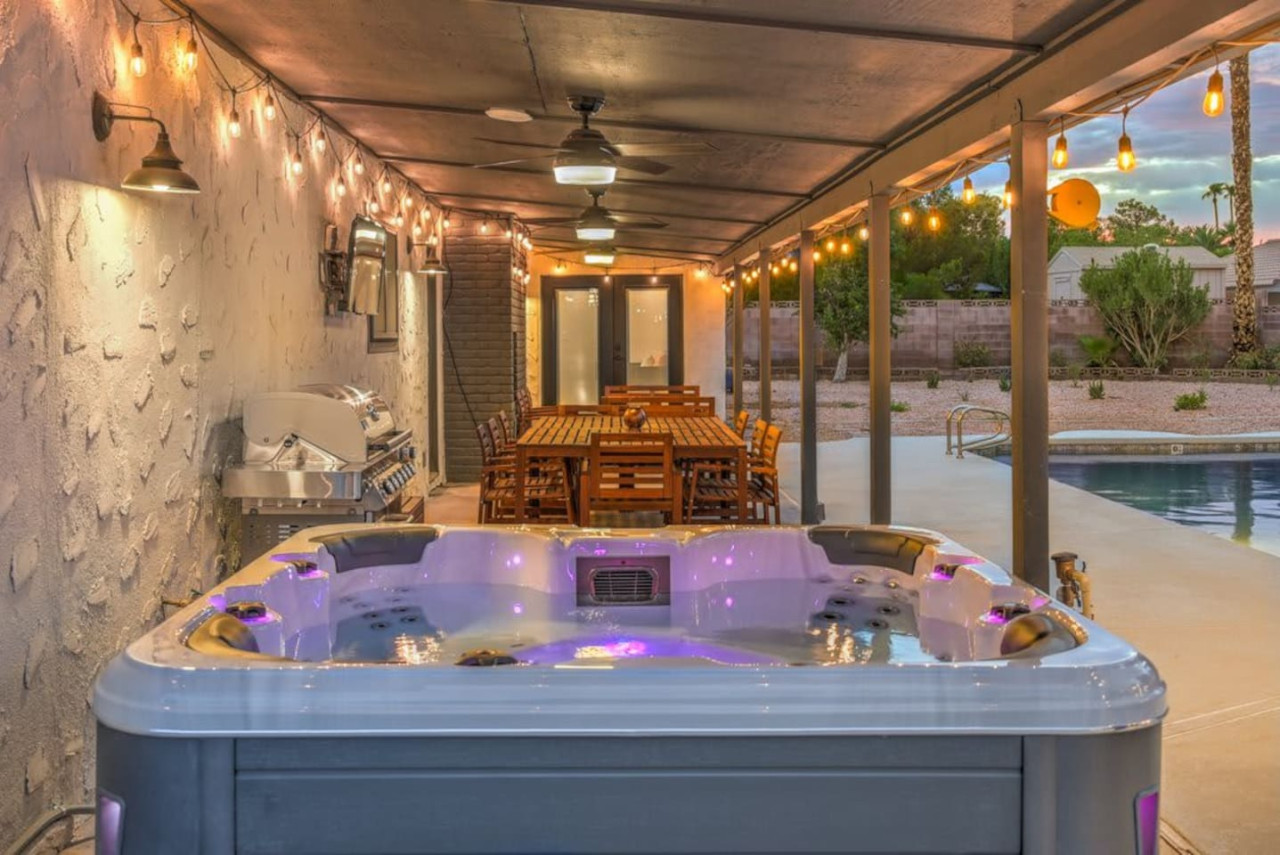 January 2025 5.00Fantastic, large, modern house perfect for our group of 8. Plenty of space for us to spread out, hang out and make the most of our weekend. We come to Las Vegas annually to play in a women's hockey tournament and would absolutely book this property again next year. The hot tub was a brilliant amenity and we appreciate that heating it was included. Overall the property was exactly what we needed, the host was responsive and we very much enjoyed our stay!