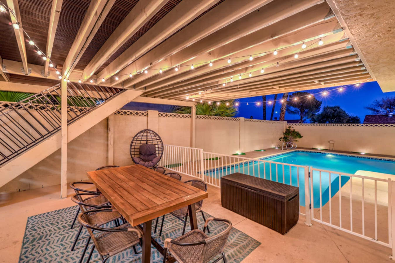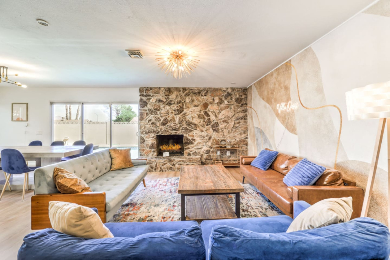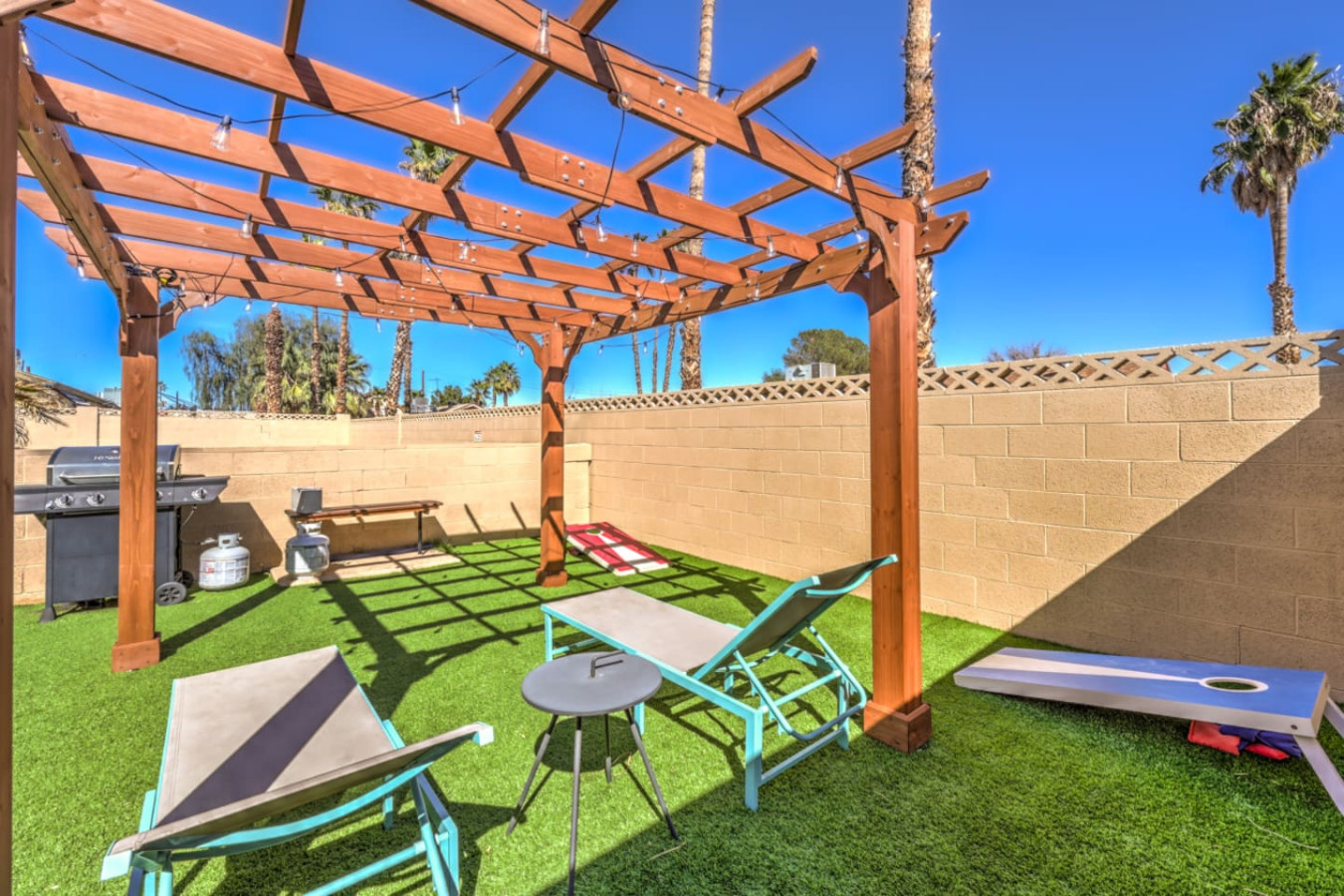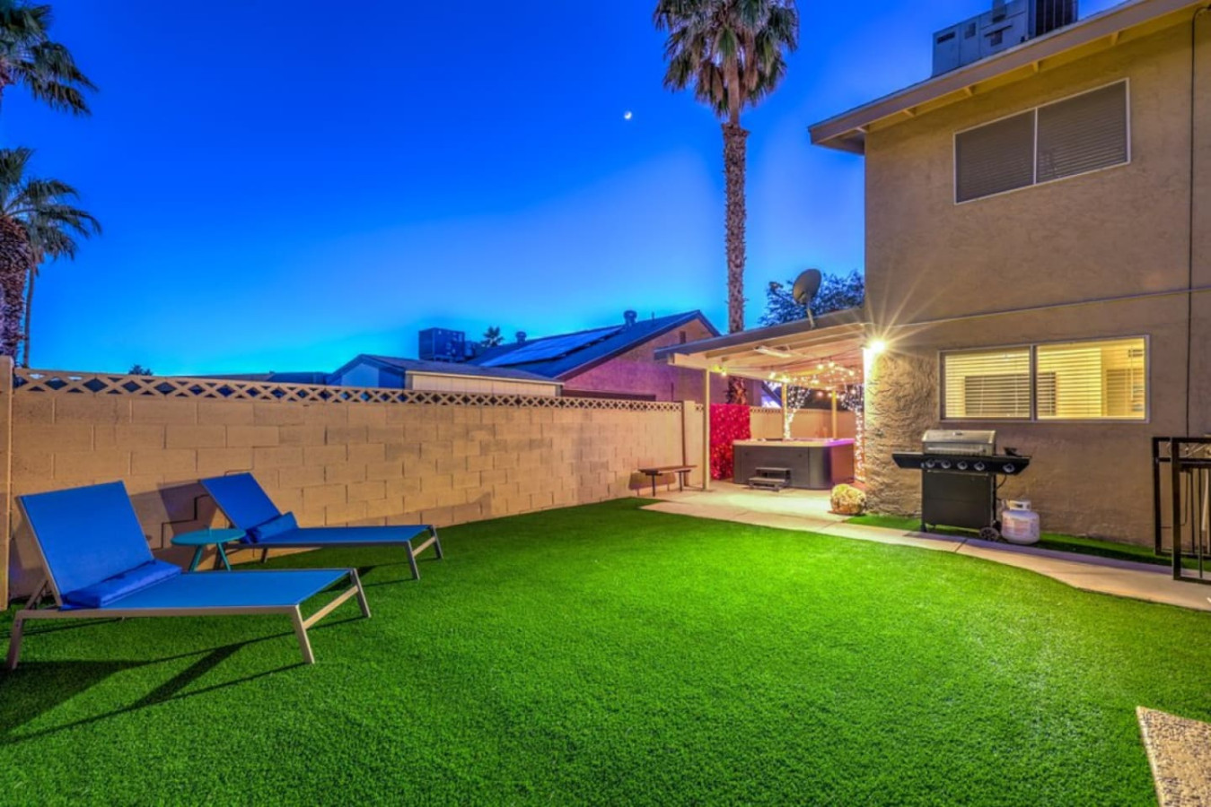 / nightEnjoy a Memorable Stay at Your Desert Oasis Retreat! Enjoy the warm Vegas summers with the expansive private pool! A 6-person jetted hot tub is also available for your enjoyment, and 2 electric bikes are available for rent to explore the beautiful views and local parks. Whether you’re looking to relax or explore, this is the right place for a unique vacation experience. ☞ 2,373 sq ft | 213.7 sq m ☞ 5 private bedrooms with comfortable bedrooms and luxurious bedroom options ☞ 9 beds, including full beds for maximum capacity ☞ Full bedroom and bathroom downstairs for added convenience ☞ Just 15 minutes east of the Las Vegas Strip and airport ☞ Mid-century modern design with central air throughout ☞ Fully equipped kitchen, perfect for preparing delicious meals in the furnished kitchen, and a comfortable entertaining room with a 75" smart TV & poker table! ☞ Clark County STVR License Number: 2006540 The Amenities Include: • Chef’s kitchen equipped with all essential tools, including an electric kettle • Pots, pans, crock pot, roasting pans, and kitchen utensils for your convenience • Full coffee bar to jump-start your day • Huge backyard with an L-shaped private pool and life jackets, towels, and floaties available • Large terrace with plenty of seating, overlooking the pool—perfect for outdoor dining or enjoying a quiet experience • Barbecue grill for outdoor cooking and 3 separate outdoor dining areas, including a sectional seating area on the terrace • 2 large lounge chairs for sunbathing and an epic patio for relaxation • Poker room with poker table and chips, a 75-inch flat-screen TV, and a selection of board games • Major streaming options available on all TVs (Netflix, Hulu, Amazon Prime) • High-speed Wi-Fi and fast Wi-Fi for streaming your favorite shows or working remotely • Dedicated workspace in the Master bedroom, perfect for those working remotely or planning their next adventure • Washer and dryer available in the garage, along with a smart lock for secure and easy access • 2-car garage with a large driveway; RV parking available for larger groups • Keyless entry for seamless check-in Additional Features: • Spacious living areas for relaxation and entertainment • Spacious retreat with full bathrooms and ensuite bathrooms in several bedrooms for added privacy • Quiet neighborhood providing the perfect setting for a restful night’s sleep • Full laundry facilities in the garage and an outdoor family setup with a huge garden • Expansive backyard perfect for family fun or a huge picnic • Quiet community and residential neighborhood, providing the best of both worlds: relaxation and access to nearby attractions • Close to famous nightlife, including the Big Apple Coaster and Hard Rock (just 15 minutes away) • Only 20 minutes to Red Rock Canyon—an ideal spot for your next adventure • Prime location near local stores and local food options • Late checkout when available to ensure you have a relaxed, stress-free departure • Large groups can comfortably stay here with maximum capacity for everyone • Heated pool and hot tub for year-round enjoyment • Full-size and spacious bedrooms, all with fresh linens and comfortable vacation vibes • Full baths, including double vanities and luxurious touches in the bathrooms • Key features like smart TVs in all main rooms for entertainment at any time • Ideal for families or groups seeking a perfect vacation experience • Close proximity to international airport for easy travel ☞ Clark County STVR License Number: 2006540 Whether you’re enjoying an exciting day exploring the famous Vegas sites or unwinding in your own private oasis, this gorgeous home has everything you need for a memorable stay. Book now for a luxurious getaway in one of the best locations near famous nightlife and popular sites! The most exciting neighborhood in the world is just up the street! Also just 6 minutes to Reid International Airport About 10 minutes away from: ☞ Allegiant Stadium, home of the Raiders ☞ T-Mobile Arena, home of the Golden Knights ☞ Bellagio Conservatory ☞ Bellagio Gallery of Fine Art ☞ Fountains of Bellagio ☞ The Art of Richard MacDonald Presented by Cirque du Soleil ☞ CAESARS PALACE ☞ FORUM SHOPS ☞ Adventuredome at Circus Circus ☞ ARIA Campus Fine Art Collection ☞ The Gallery Featuring Dale Chihuly ☞ COSMOPOLITAN - The Ice Rink at Boulevard Pool Open Nov. 20 to Jan. 10 ☞ FLAMINGO - Wildlife Habitat at the Flamingo ☞ LINQ PROMENADE ☞ Brooklyn Bowl Bowling Lanes ☞ High Roller ☞ FlyLINQ ☞ Arcadia Earth ☞ Barbie: The Exhibition ☞ Big Bus Tours ☞ Fashion shows at Fashion Show mall ☞ FlyOver Las Vegas ☞ Hollywood Cars Museum ☞ Las Vegas Explorer Pass ☞ M&M's World ☞ Strip Gun Club ☞ The Range 702 ☞ Vegas Indoor Skydiving ☞ Welcome to Las Vegas sign Easy 10 minute Uber access to the Las Vegas Strip Easy bus rides up Flamingo Road to the Strip Guests are required to sign a "Guest Rental Agreement" upon booking. * We have security cameras facing the street and in the front door. * We have noise monitoring device in the backyard and in the living room. These devices only records the decibels to monitor noise level during quiet hours but NO audio recording. All of them are on 24/7 and for security purposes. There is no camera in private area or anywhere inside the house. Security cameras solely facing the street (as required by the City)