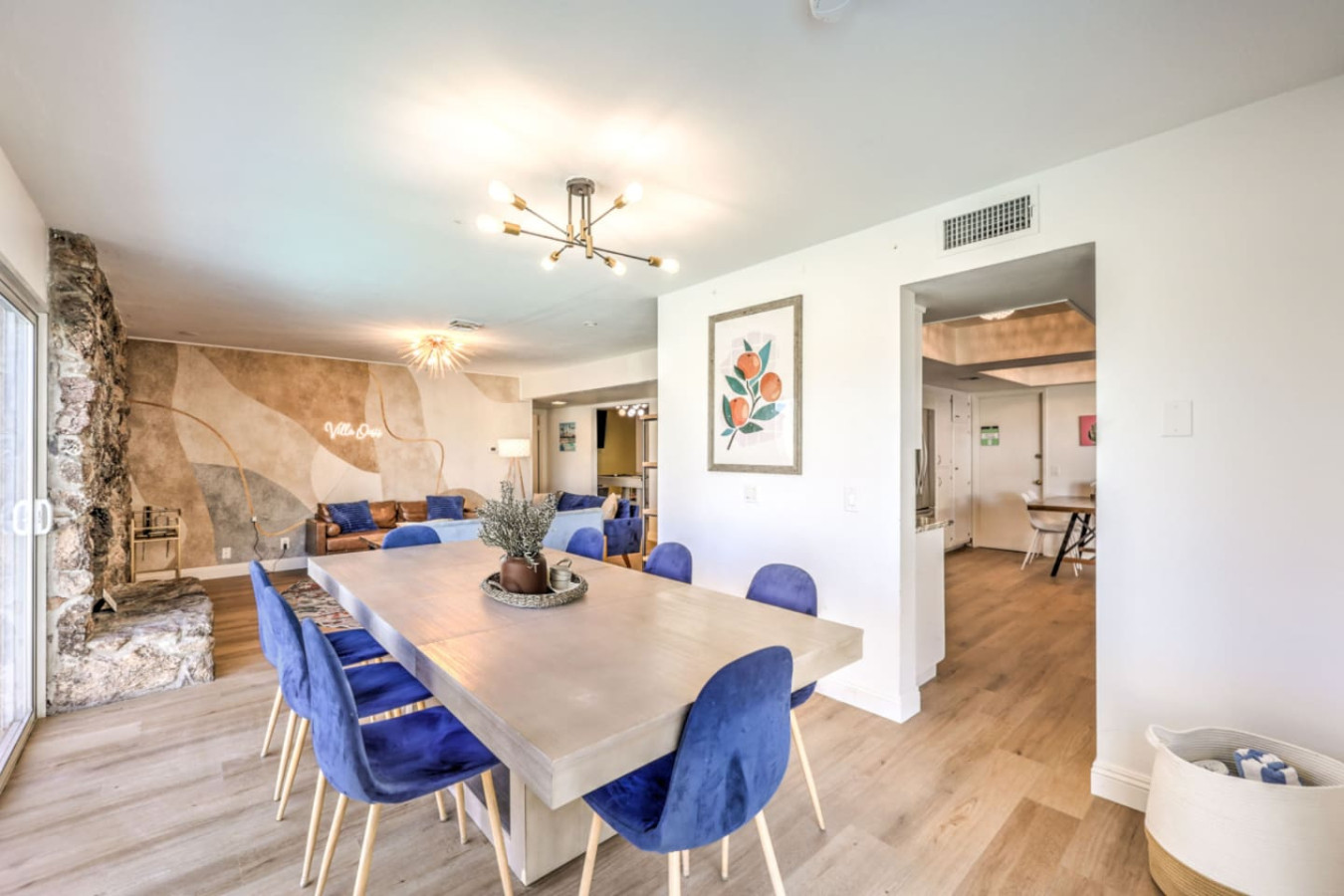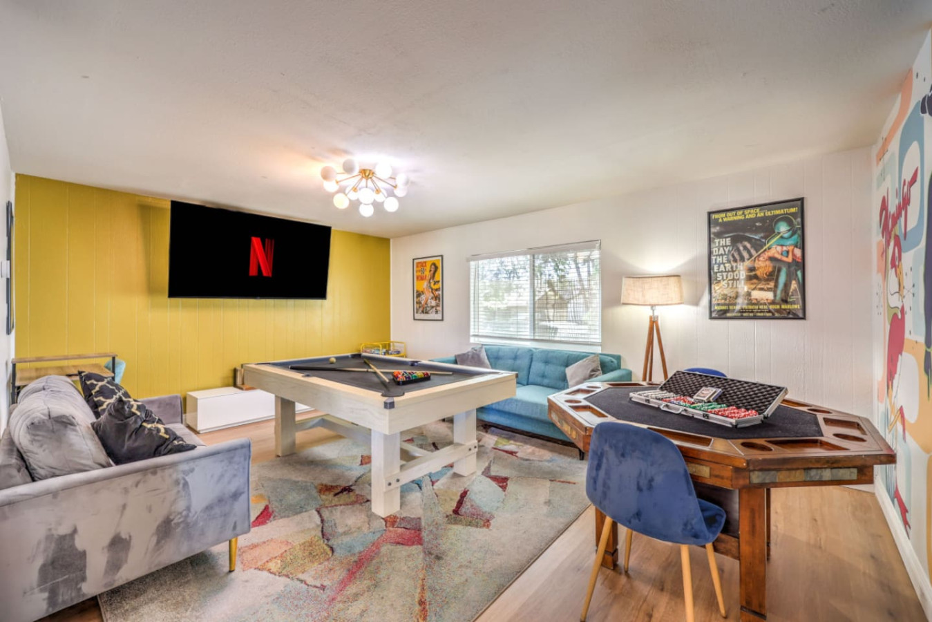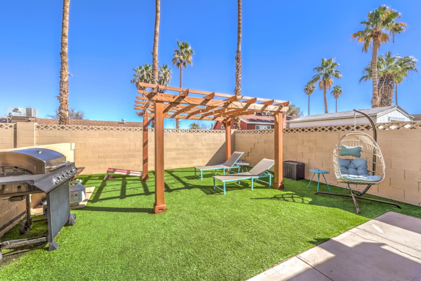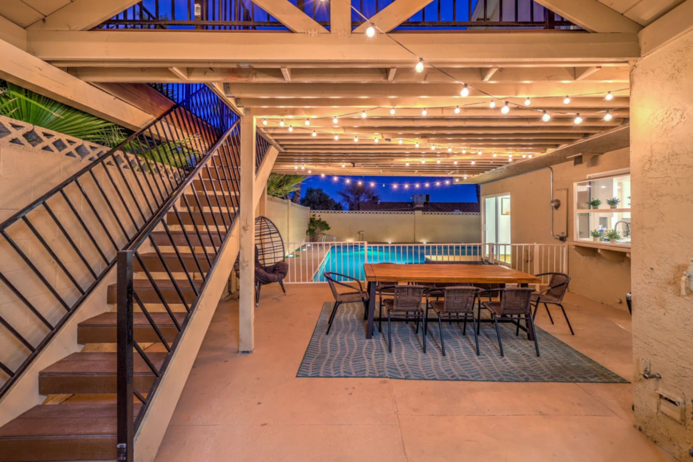 / nightEnjoy a Memorable Stay at Your Desert Oasis Retreat! Enjoy the warm Vegas summers with the expansive private pool! A 6-person jetted hot tub is also available for your enjoyment, and 2 electric bikes are available for rent to explore the beautiful views and local parks. Whether you’re looking to relax or explore, this is the right place for a unique vacation experience. ☞ 2,373 sq ft | 213.7 sq m ☞ 5 private bedrooms with comfortable bedrooms and luxurious bedroom options ☞ 9 beds, including full beds for maximum capacity ☞ Full bedroom and bathroom downstairs for added convenience ☞ Just 15 minutes east of the Las Vegas Strip and airport ☞ Mid-century modern design with central air throughout ☞ Fully equipped kitchen, perfect for preparing delicious meals in the furnished kitchen, and a comfortable entertaining room with a 75" smart TV & poker table! ☞ Clark County STVR License Number: 2006540 The Amenities Include: • Chef’s kitchen equipped with all essential tools, including an electric kettle • Pots, pans, crock pot, roasting pans, and kitchen utensils for your convenience • Full coffee bar to jump-start your day • Huge backyard with an L-shaped private pool and life jackets, towels, and floaties available • Large terrace with plenty of seating, overlooking the pool—perfect for outdoor dining or enjoying a quiet experience • Barbecue grill for outdoor cooking and 3 separate outdoor dining areas, including a sectional seating area on the terrace • 2 large lounge chairs for sunbathing and an epic patio for relaxation • Poker room with poker table and chips, a 75-inch flat-screen TV, and a selection of board games • Major streaming options available on all TVs (Netflix, Hulu, Amazon Prime) • High-speed Wi-Fi and fast Wi-Fi for streaming your favorite shows or working remotely • Dedicated workspace in the Master bedroom, perfect for those working remotely or planning their next adventure • Washer and dryer available in the garage, along with a smart lock for secure and easy access • 2-car garage with a large driveway; RV parking available for larger groups • Keyless entry for seamless check-in Additional Features: • Spacious living areas for relaxation and entertainment • Spacious retreat with full bathrooms and ensuite bathrooms in several bedrooms for added privacy • Quiet neighborhood providing the perfect setting for a restful night’s sleep • Full laundry facilities in the garage and an outdoor family setup with a huge garden • Expansive backyard perfect for family fun or a huge picnic • Quiet community and residential neighborhood, providing the best of both worlds: relaxation and access to nearby attractions • Close to famous nightlife, including the Big Apple Coaster and Hard Rock (just 15 minutes away) • Only 20 minutes to Red Rock Canyon—an ideal spot for your next adventure • Prime location near local stores and local food options • Late checkout when available to ensure you have a relaxed, stress-free departure • Large groups can comfortably stay here with maximum capacity for everyone • Heated pool and hot tub for year-round enjoyment • Full-size and spacious bedrooms, all with fresh linens and comfortable vacation vibes • Full baths, including double vanities and luxurious touches in the bathrooms • Key features like smart TVs in all main rooms for entertainment at any time • Ideal for families or groups seeking a perfect vacation experience • Close proximity to international airport for easy travel ☞ Clark County STVR License Number: 2006540 Whether you’re enjoying an exciting day exploring the famous Vegas sites or unwinding in your own private oasis, this gorgeous home has everything you need for a memorable stay. Book now for a luxurious getaway in one of the best locations near famous nightlife and popular sites! The most exciting neighborhood in the world is just up the street! Also just 6 minutes to Reid International Airport About 10 minutes away from: ☞ Allegiant Stadium, home of the Raiders ☞ T-Mobile Arena, home of the Golden Knights ☞ Bellagio Conservatory ☞ Bellagio Gallery of Fine Art ☞ Fountains of Bellagio ☞ The Art of Richard MacDonald Presented by Cirque du Soleil ☞ CAESARS PALACE ☞ FORUM SHOPS ☞ Adventuredome at Circus Circus ☞ ARIA Campus Fine Art Collection ☞ The Gallery Featuring Dale Chihuly ☞ COSMOPOLITAN - The Ice Rink at Boulevard Pool Open Nov. 20 to Jan. 10 ☞ FLAMINGO - Wildlife Habitat at the Flamingo ☞ LINQ PROMENADE ☞ Brooklyn Bowl Bowling Lanes ☞ High Roller ☞ FlyLINQ ☞ Arcadia Earth ☞ Barbie: The Exhibition ☞ Big Bus Tours ☞ Fashion shows at Fashion Show mall ☞ FlyOver Las Vegas ☞ Hollywood Cars Museum ☞ Las Vegas Explorer Pass ☞ M&M's World ☞ Strip Gun Club ☞ The Range 702 ☞ Vegas Indoor Skydiving ☞ Welcome to Las Vegas sign Easy 10 minute Uber access to the Las Vegas Strip Easy bus rides up Flamingo Road to the Strip Guests are required to sign a "Guest Rental Agreement" upon booking. * We have security cameras facing the street and in the front door. * We have noise monitoring device in the backyard and in the living room. These devices only records the decibels to monitor noise level during quiet hours but NO audio recording. All of them are on 24/7 and for security purposes. There is no camera in private area or anywhere inside the house. Security cameras solely facing the street (as required by the City)