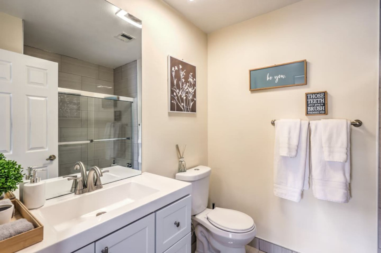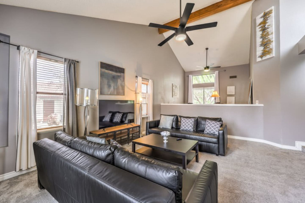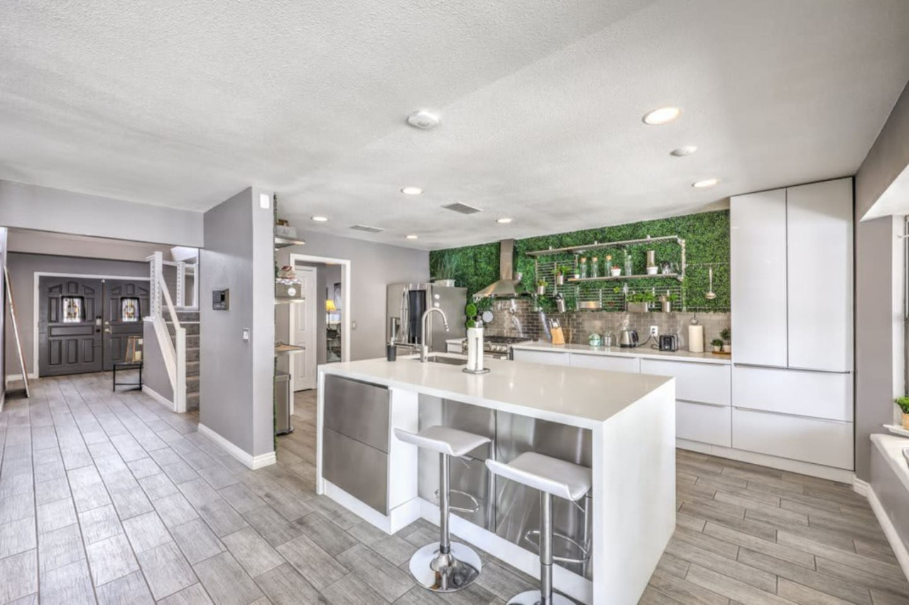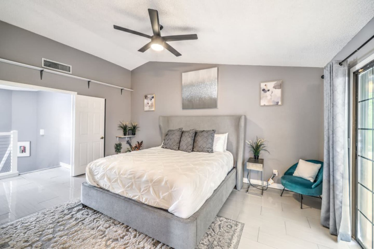 / night☞ 2,295 square feet | 213.21 sq meters ☞ 3 private bedrooms ☞ 2.5 bathrooms ☞ 4 Individual Beds ☞ Only 10 minutes to the Strip/Airport ☞ 2 - car private garage ☞ RV parking! ☞ Sparkling, modern PebbleTec pool and spa. Welcome to your luxurious private retreat in the heart of Las Vegas, where you can enjoy a peaceful and relaxing stay while still being just minutes away from the excitement and entertainment that the city is known for. Our stunning modern home, available for stays of 30 days or more, has been compl As you step inside this beautifully designed home, you'll be greeted by an open-concept living area with stylish furnishings, contemporary décor, and abundant natural light. The spacious living room features comfortable seating, perfect for unwinding after a day of exploring the city, and a large flat-screen TV for your entertainment needs. The fully equipped gourmet kitchen boasts state-of-the-art appliances, sleek countertops, and all the essentials you need to prepare delicious meals during your stay. Enjoy your culinary creations at the elegant dining table, which comfortably seats up to six guests. Our home offers three generously sized bedrooms, each featuring plush beds and high-quality linens to ensure a restful night's sleep. The primary bedroom includes a private en-suite bathroom with a walk-in shower and a soaking tub for ultimate relaxation. Outside, you'll find your own personal oasis with a sparkling PebbleTec pool and spa, surrounded by lush landscaping and ample lounge seating. This outdoor space is perfect for soaking up the sun, taking a refreshing dip, or enjoying a leisurely swim under the stars. In addition to the luxurious amenities within the home, you'll also have access to a two-car garage and dedicated RV parking, providing ample space for your vehicles during your stay. Our home's prime location means you're only a short drive away from Las Vegas' top attractions, including the famous Strip, Allegiant Stadium, and Reid International Airport. Whether you're visiting Las Vegas for business, pleasure, or an extended stay, our modern and sophisticated home offers the perfect blend of comfort, convenience, and luxury. Book your stay today and experience the best that the entertainment capital of the world has to offer, all while enjoying the peace and tranquility of your own private retreat! * We have security cameras facing the street and in the front door. * We have noise monitoring device in the backyard and in the living room. These devices only records the decibels to monitor noise level during quiet hours but NO audio recording. All of them are on 24/7 and for security purposes. There is no camera in private area or anywhere inside the house. Security cameras solely facing the street (as required by the City)