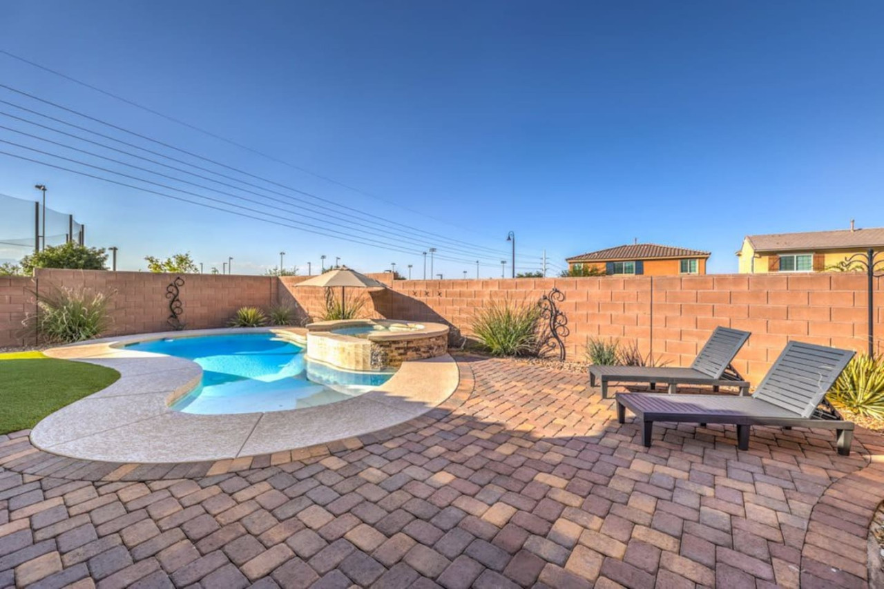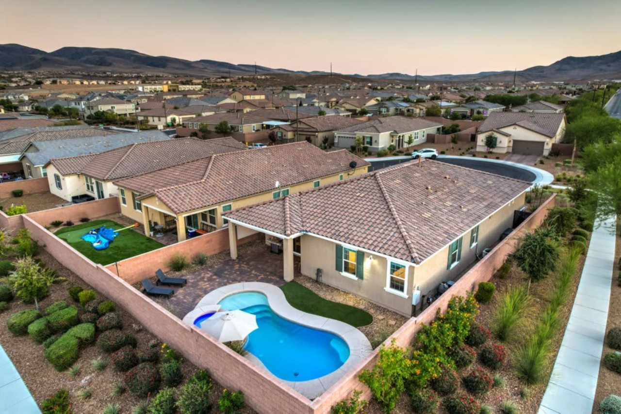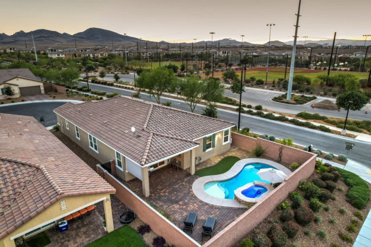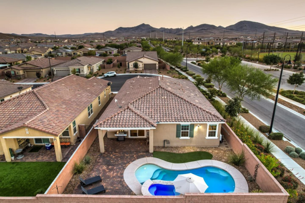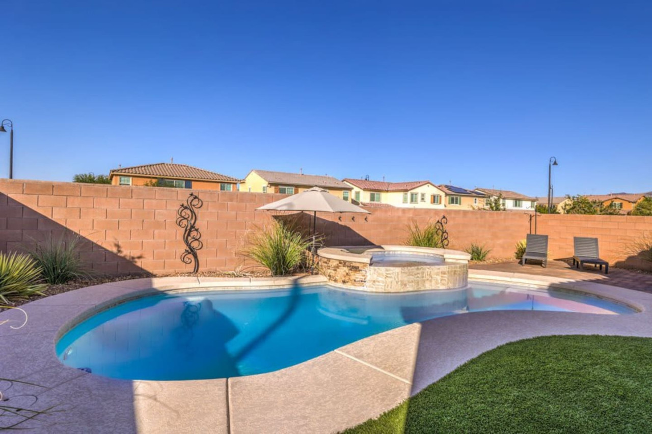 / night★ Located in Inspirada ★ Pool and spa ★ Single story home ★ Private lot (no homes on 2 sides) ★ Adjacent to community park ★ Very Close to Raiders practice facility, Henderson airport ★Cul-de-sac lot location ★ 3 Private bedrooms Discover your sanctuary in Inspirada, nestled at a cul-de-sac's end. This single-story, three-bedroom home offers an open floor plan connecting living, dining, and kitchen areas—perfect for entertaining and daily life. The kitchen is a chef’s delight with 42" cabinets, granite island, breakfast bar, and ample storage. The primary bedroom features an en-suite with an oversized shower. Enjoy extra space in the oversized two-car garage, complete with a soft water system. The backyard is a private oasis, boasting a sparkling pool and spa under LED lights, alongside a spacious patio for outdoor gatherings. Located in a vibrant community, this home provides easy access to parks, schools, and shopping, ensuring a convenient and enjoyable lifestyle. Experience the perfect blend of tranquility and community spirit in this Inspirada gem. The Master Planned Community of Inspirada offers Comfort and Relaxation surrounded by 85 Acres of Parks, Trails, and Open space. Living in Henderson, you are walking distance or minutes away from daily conveniences, outdoor adventures, an impressive collection of golf courses, museums, top-rated schools, and highly praised dining and entertainment venues. Commuting is easy; Inspirada allows for easy access to five major highways, I-15, I-215, I-515, SR 582 and SR 564. It’s a quick 15 minutes from McCarran International Airport and the famed Las Vegas strip. Inspirada is also just 6 minutes away from the Henderson Executive Airport, a convenient and economical alternative to McCarran International Airport. * We have security cameras facing the street and in the front door. * We have noise monitoring device in the backyard and in the living room. These devices only records the decibels to monitor noise level during quiet hours but NO audio recording. *The fridge is not connected to a waterline due to leak risks. If you need an ice tray, we'll have one delivered within 24 hours. *The mailbox access or keys are not provided unless the guest has a lease agreement. All of them are on 24/7 and for security purposes. There is no camera in private area or anywhere inside the house. Security cameras solely facing the street (as required by the City)