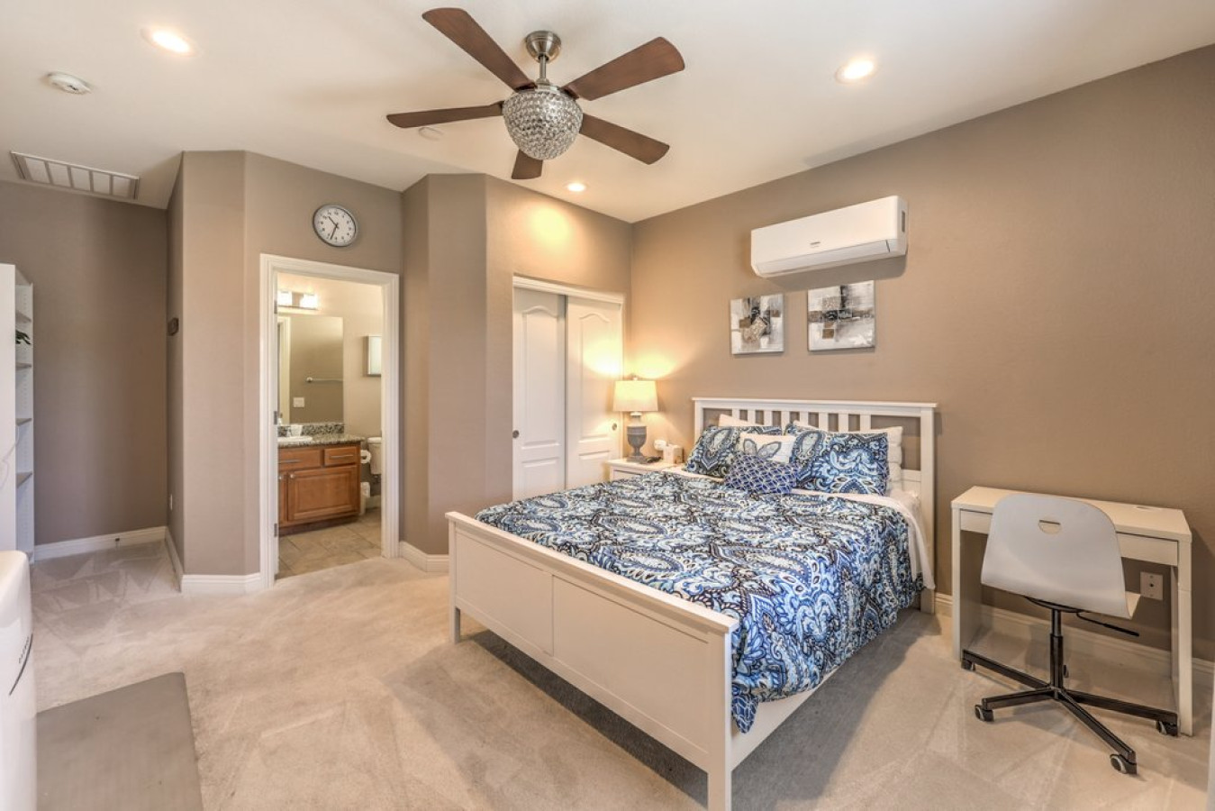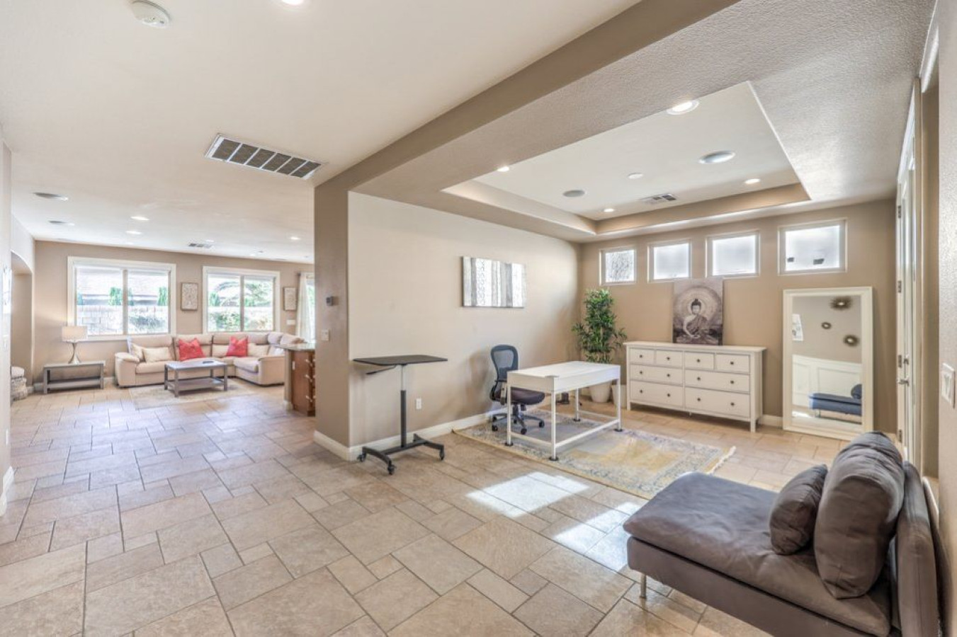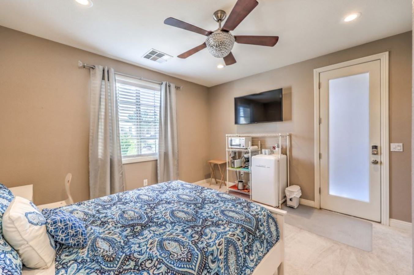/ nightThis 2,000 sqft **Furnished Mid Term Rental** home features 3 bedrooms, 2.5 bathrooms, a fully equipped kitchen, and a dedicated office space. It’s fully furnished and includes an enclosed private backyard for your enjoyment. Additionally, there’s a separate guest casita with a king-sized bed, full bathroom, mini fridge, coffee maker, and microwave, making it a total of 4 bedrooms. This provides extra privacy and comfort, perfect for guests or groups. Guests are required sign a Guest Rental Agreement upon booking. * We have security cameras facing the street and in the front door. * We have noise monitoring device in the backyard and in the living room. These devices only records the decibels to monitor noise level during quiet hours but NO audio recording. *The fridge is not connected to a waterline due to leak risks. If you need an ice tray, we'll have one delivered within 24 hours. *The mailbox access or keys are not provided unless the guest has a lease agreement. All of them are on 24/7 and for security purposes. There is no camera in private area or anywhere inside the house. Security cameras solely facing the street (as required by the City)
