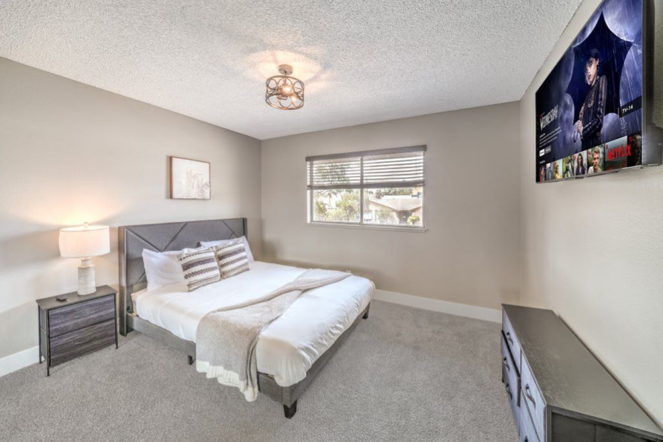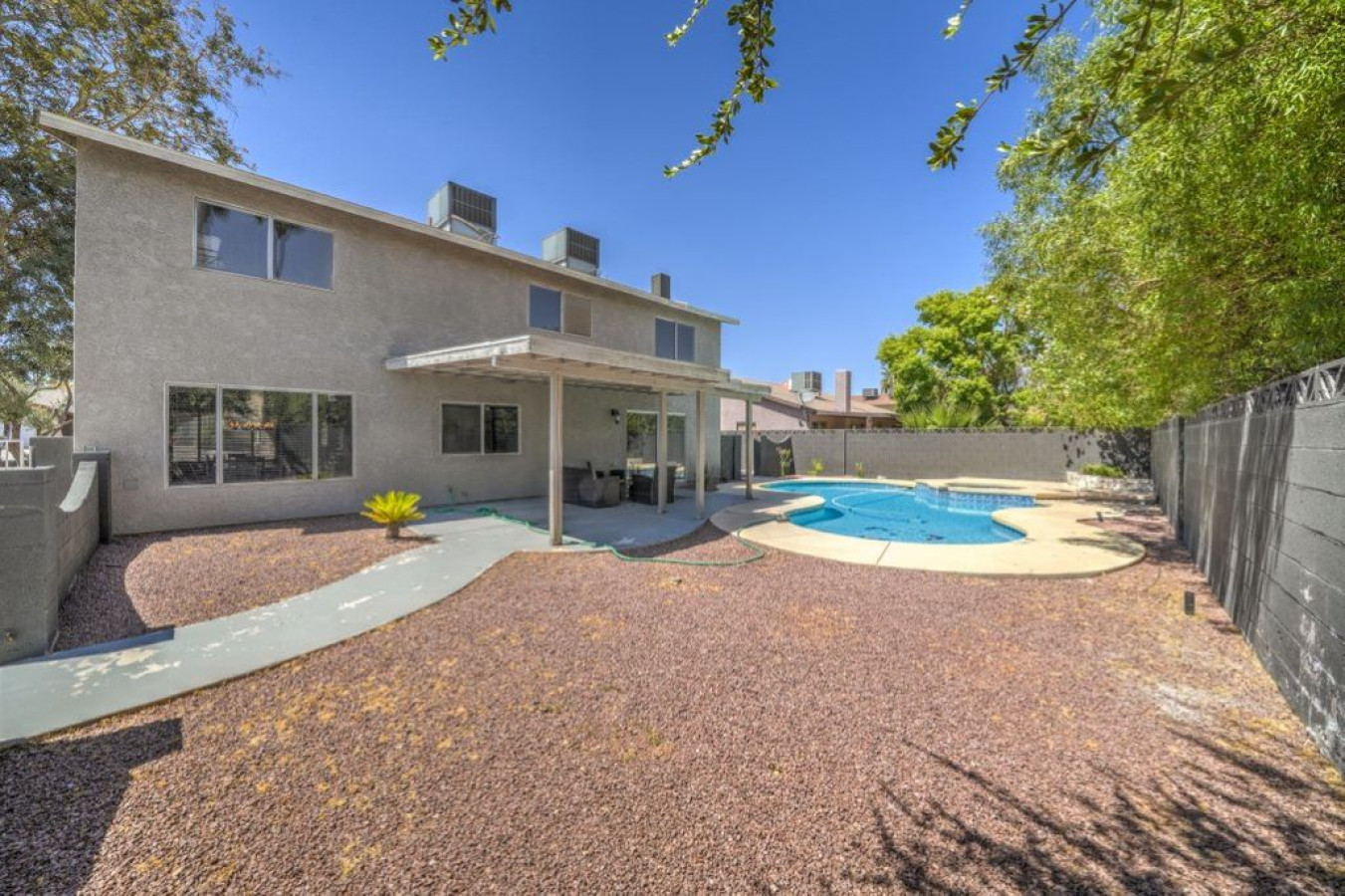 / night☞ 2,163 sq ft | 200.9 sq meters ☞ Private swimming pool ☞ 4 Private Bedrooms ☞ 2 full bathrooms and one 1 half-bathroom ☞ Living Room with Smart TV ☞ Fully equipped kitchen ☞ Primary suite with en suite bathroom and King Sized Bed ☞ Space to park an RV ☞ Just 10 minutes the Strip ☞ Close to Chinatown's 90+ amazing restaurants ☞ Easy access to Allegiant Stadium and the Airport ☞ Clark County STVR License Number: 2007223 Welcome to your Las Vegas home! Enjoy our beautifully updated modern home nestled in a safe neighborhood just minutes from the Las Vegas strip and all the attractions. Emjoy a spacious 2,163 square feet of open living and interior spaces, showcasing high-end upgrades throughout. From the moment you walk through the front door with smart lock entry, you’ll be greeted by natural light, new furniture, and essential amenities that make this a perfect home away from home. Bedrooms & Bathrooms: Primary bedroom: 1 King bed + ensuite bathroom with dual sinks bathroom, full bath, and private bathroom Second bedroom: Bunk bed (full bottom/twin top) Third bedroom: Bunk bed (full bottom/twin top) Fourth bedroom: 1 Queen bed All bedrooms are spacious bedrooms with fresh linens, and cozy living vibes. There are full bathrooms on both the first floor and second floor, offering plenty of ample space for the maximum capacity of guests. Living & Kitchen Areas: Enjoy open concept living with a spacious living area, smart TVs with major streaming services to catch your favorite show, and fast WiFi with high speed connectivity throughout the entire property. The furnished kitchen features stainless steel appliances, a modern kitchen layout with a large island, and even a mini kitchen setup in the common area—perfect for whipping up delicious meals. Outdoor Amenities: Step into a huge backyard oasis with a beautiful pool, sparkling pool, and private pool—perfect for soaking up the Vegas sun or enjoying outdoor adventures. The outdoor kitchen, outdoor furniture, and private backyard space make it an entertainer's dream. Relax under the stars, cook out, and embrace the perfect spot to unwind. Extras & Conveniences: Free parking with space for trailer parking Full laundry area Smart TVs in multiple rooms Double doors for easy backyard access Quiet hours enforced for your peace of mind Good condition, well-maintained property Enjoy same-day bookings, early check and late check options when available. You'll have full access to the whole house, with proximity to the international airport, Red Rock, Medical Center, and more—all within a short drive. This is the perfect blend of style, space, and convenience—a true modern getaway in the heart of Las Vegas. Book now for a full day of fun, relaxation, and memories!