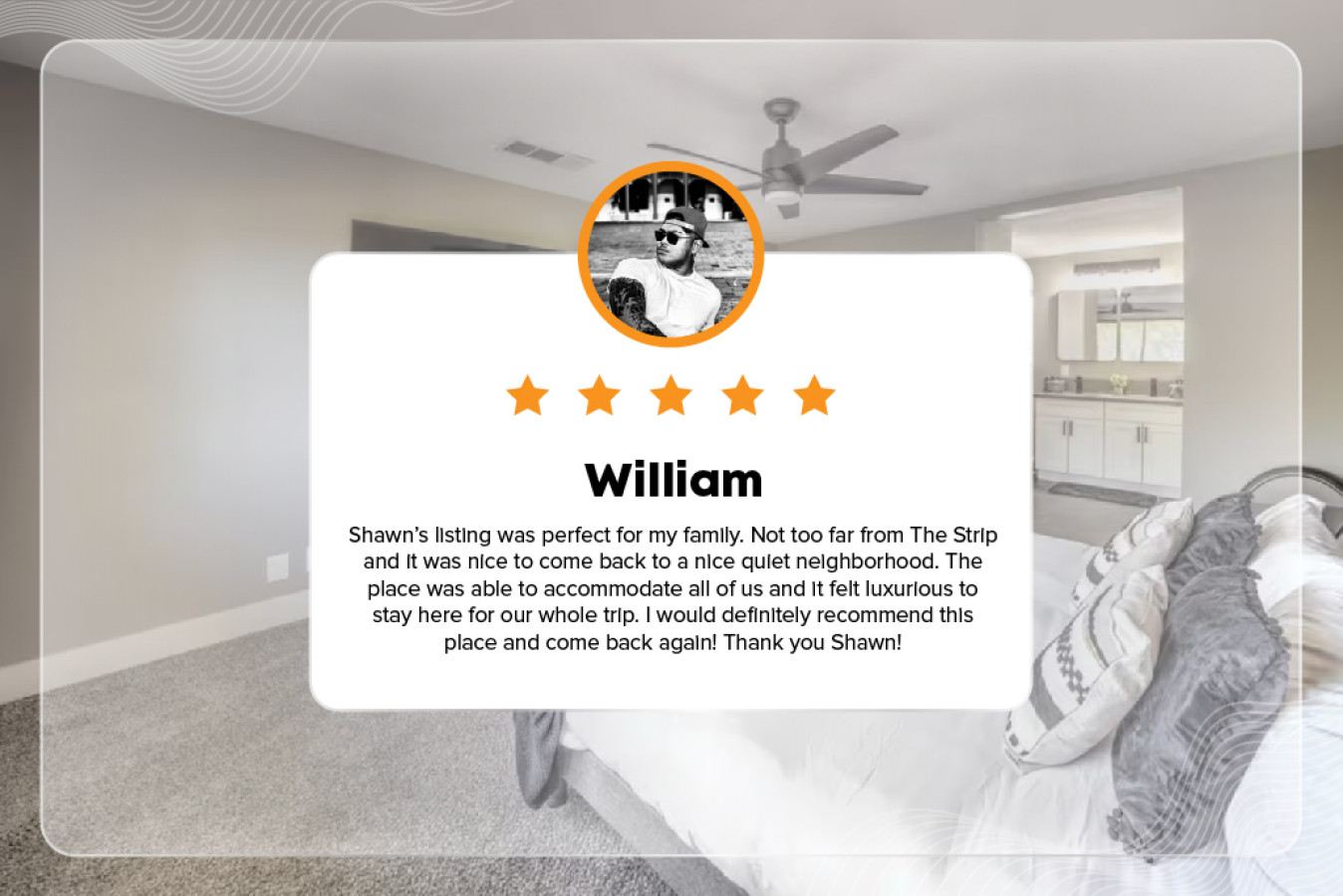 February 2025 5.00Shawn’s listing was perfect for my family. Not too far from The Strip and it was nice to come back to a nice quiet neighborhood. The place was able to accommodate all of us and it felt luxurious to stay here for our whole trip. I would definitely recommend this place and come back again! Thank you Shawn!