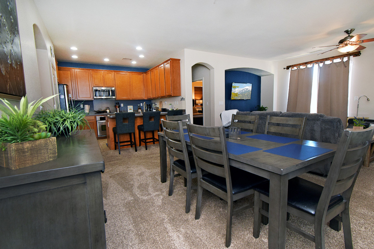 / night☞ 1,837 sq ft | 170.7 sq meters ☞ 4 Private Bedrooms ☞ Fully equipped modern kitchen ☞ 2-car garage ☞ Private backyard with BBQ ☞ Single story home with no stairs ☞ An easy 30 Minutes drive to Lake Tahoe ☞ 20 Minutes to Mount Rose Summit ☞ 20 Minutes to Downtown Reno and University of Nevada ☞ 25 minutes to Carson City and the state capitol Welcome to your cozy retreat in the Sierras—right in the heart of vibrant Northern Nevada and the stunning Reno/Tahoe region! Nestled in a quiet, friendly Reno neighborhood, this spacious and charming home is your ideal home base—just minutes from the energy of downtown and a short drive to the outdoor adventures that define the area. Whether you're visiting for business, leisure, or a little of both, you’ll find comfort, convenience, and a touch of mountain charm throughout your stay. Inside, you’ll find four generous bedrooms, each thoughtfully furnished with cozy beds, fresh linens, and plenty of storage space to settle in with ease. The two modern bathrooms come fully stocked with fluffy towels and complimentary toiletries, making it easy to relax and refresh. The heart of the home is a warm and inviting living room—perfect for unwinding after a day out—with plush seating, a flat-screen TV, and a fireplace that adds a cozy touch on chilly Sierra evenings. The fully equipped kitchen makes dining in a delight, featuring stainless steel appliances, all the cookware you need, and a dining area ideal for family meals or casual conversations over coffee. Step outside to enjoy the peaceful backyard patio—perfect for morning coffee or evening wind-downs under the stars. Included amenities: - High-speed Wi-Fi - Central heating & air conditioning - Washer & dryer - Complimentary toiletries - Fresh linens & towels - Free on-site parking - Explore nearby highlights: Downtown Reno – Casinos, restaurants, nightlife, and local culture just minutes away - Lake Tahoe – World-class skiing, hiking, and lake fun a scenic drive away - University of Nevada, Reno – Just a short drive for campus visits or events - Local Parks & Trails – Ideal for walking, biking, and picnics with a view Whether you're here for a weekend getaway or an extended stay, this Reno home offers the perfect blend of comfort, convenience, and adventure. Book your stay today and experience the best of Northern Nevada! **** DISCLOSURES***** * Guests are required sign a Guest Rental Agreement upon booking. * We have security cameras facing the street and in the front door. * We have noise monitoring device in the backyard and in the living room.
