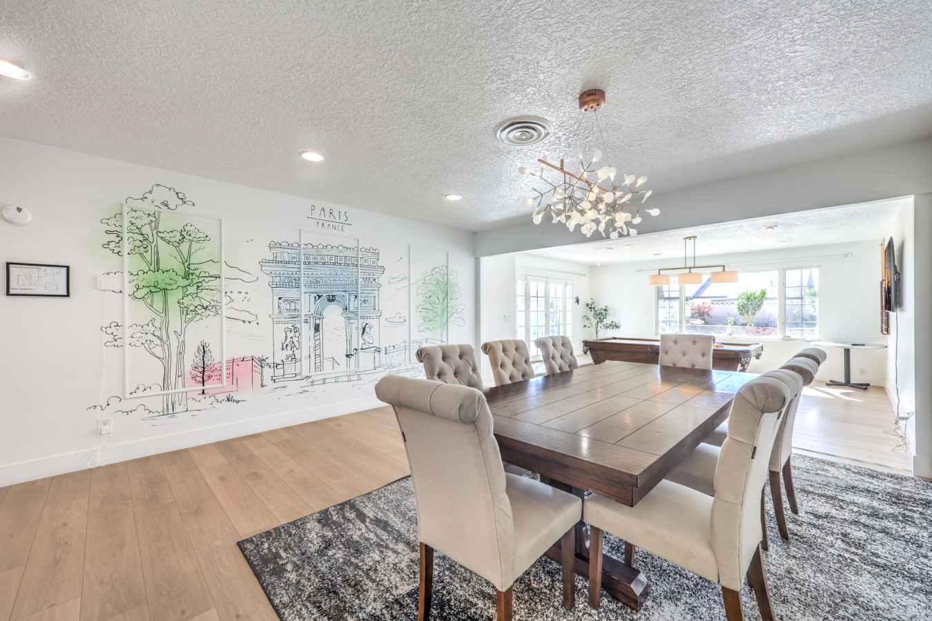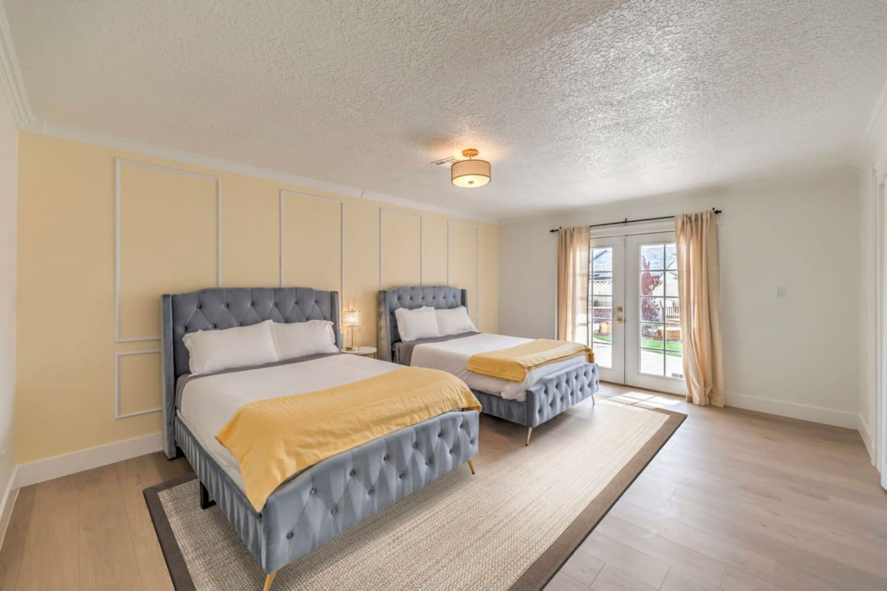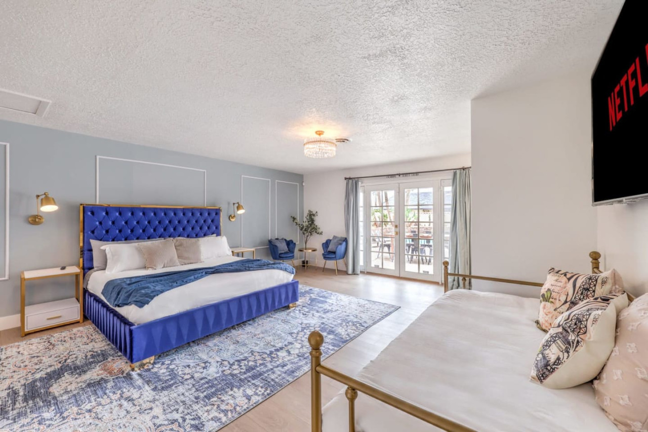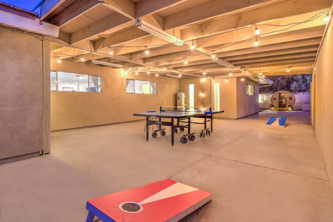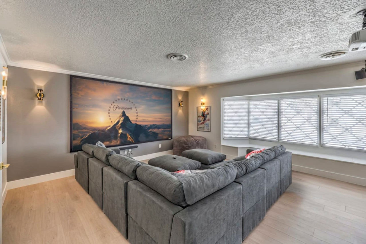 / night- Expansive 4,163 square ft villa - Less than 7 minutes to the Strip! - Grand Movie Theater with stock concession stand and arcade game! - Free access to HBO max, Disney+, Hulu, Netflix, ESPN+ - Sparkling pool and spa (Pool heating available for $100 per night) - 8 person sauna - Billiards Table - Ping pong table and corn hole set - Outdoor dining area and lounge chairs - BBQ grill - Pergola with conversation set to enjoy each others company - 5 bedrooms | 4 bathrooms (wow) Freshly renovated in 2023 by the owner, be among the first to enjoy this beautiful stay just minutes from the Strip. The home features incredible indoor and outdoor amenities with over 4100 square feet to enjoy. This is a massive one story home with 5 bedrooms, featuring 9 individual beds. The indoor has a fully stocked kitchen, huge living area, dining area, pool table area, movie theatre with arcade game, breakfast nook and more The backyard includes a BBQ, dining area, pergola with conversation set to relax in the shade, sun lounge chairs for relaxing in the sun, and of course the newly renovated heated pool, spa and hot sauna. The side patio is also lit up with a ping pong table and cornhole set to enjoy some games while relaxing Heated Pool (pool heating additional cost) - Complimentary Heated Spa (Wow) - 8 person sauna - Billiards Table - Outdoor dining area and lounge chairs - Pergola with conversation set to enjoy each others company - Outdoor patio game area with ping pong table and cornhole - Grand Movie theatre with stocked concession stand and arcade game - Fully Equipped Kitchen with Keurig and coffee grounds - 4100+ sq feet of spacious living area - 5 Bedrooms with Paris themed accents - 9 Individual Beds (1 king bed, 1 trundle with 2 twin beds, 1 queen bed, 4 full beds, 1 bunk bed with full bed and twin bed) - Wireless High-Speed Internet - 6 Smart TVs with Streaming - Pool heating available for $100 per night You have entire access to the home! The most exciting neighborhood in the world is just up the street! Also just 5 minutes to Reid International Airport About 5 minutes away from: ☞ Allegiant Stadium, home of the Raiders ☞ T-Mobile Arena, home of the Golden Knights ☞ Bellagio Conservatory ☞ Bellagio Gallery of Fine Art ☞ Fountains of Bellagio ☞ The Art of Richard MacDonald Presented by Cirque du Soleil ☞ CAESARS PALACE ☞ FORUM SHOPS ☞ Adventuredome at Circus Circus ☞ ARIA Campus Fine Art Collection ☞ The Gallery Featuring Dale Chihuly ☞ COSMOPOLITAN - The Ice Rink at Boulevard Pool Open Nov. 20 to Jan. 10 ☞ FLAMINGO - Wildlife Habitat at the Flamingo ☞ LINQ PROMENADE ☞ Brooklyn Bowl Bowling Lanes ☞ High Roller ☞ FlyLINQ ☞ Arcadia Earth ☞ Barbie: The Exhibition ☞ Big Bus Tours ☞ Fashion shows at Fashion Show mall ☞ FlyOver Las Vegas ☞ Hollywood Cars Museum ☞ Las Vegas Explorer Pass ☞ M&M's World ☞ Strip Gun Club ☞ The Range 702 ☞ Vegas Indoor Skydiving ☞ Welcome to Las Vegas sign Guests are required to sign a "Guest Rental Agreement" upon booking. * We have security cameras facing the street and in the front door. * We have noise monitoring device in the backyard and in the living room. These devices only records the decibels to monitor noise level during quiet hours but NO audio recording. * Most gas fireplaces are for decorative purposes only. * The fridge is not connected to a waterline due to leak risks. If you need an ice tray, we'll have one delivered within 24 hours. All of them are on 24/7 and for security purposes. There is no camera in private area or anywhere inside the house. Security cameras solely facing the street (as required by the City)