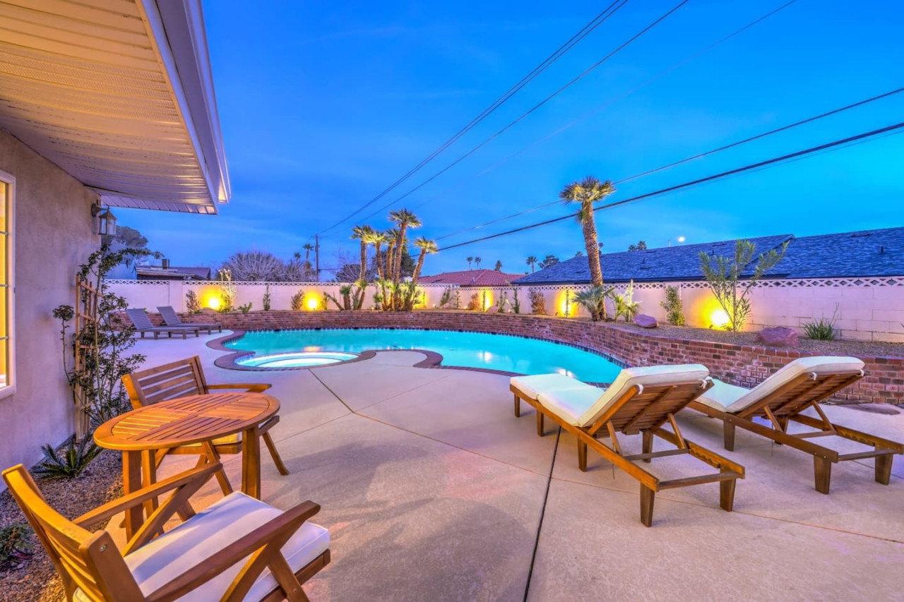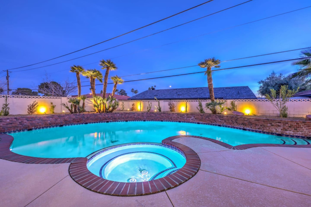March 2025 5.00The place certainly met our expectations, easy to find and easy access. Jacuzzi and pool are nice feature’s of the house. Kitchen had everything we needed. Convenient location (15 minutes to the strip 15 min to airport) we didn’t even rent a car, used Uber and Lyft.