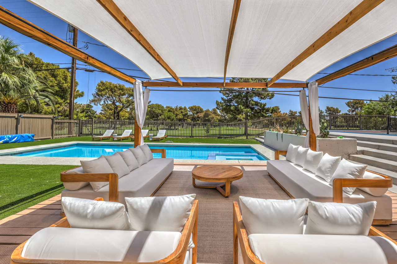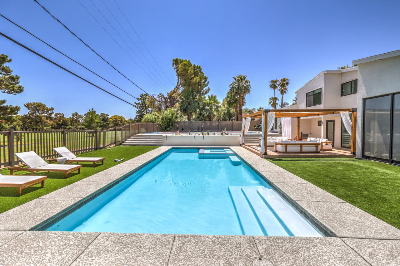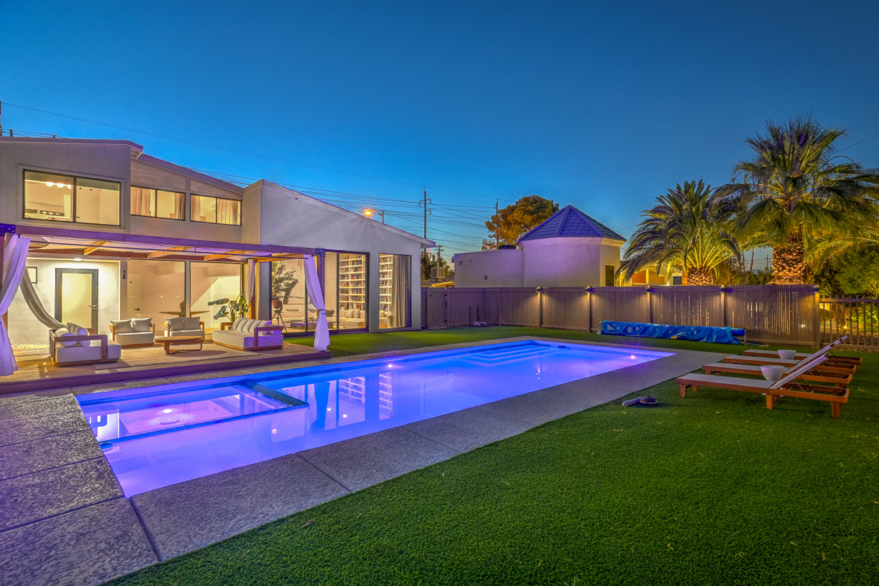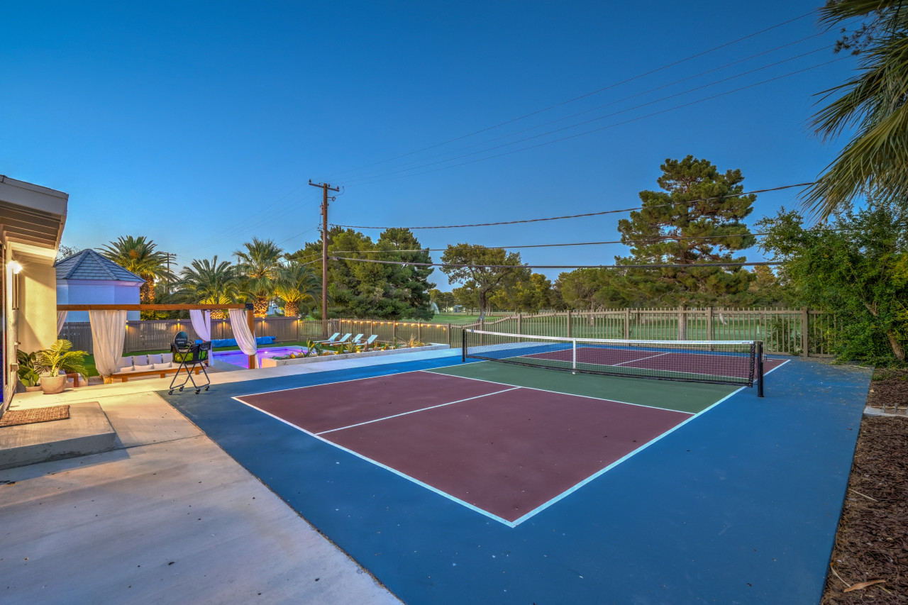 / nightWelcome to your perfect midterm getaway! This spacious 4-bedroom home features a luxurious king bed in the primary suite, two full beds in the other bedrooms, and a cozy queen-sized bed. Ideal for families or groups, the home is outfitted with modern comforts. Step outside to enjoy your private backyard oasis: - Swimming Pool (additional charge for pool heating) - sauna room - BBQ grill. - pickleball court - sun chairs. - Gym featuring workout equipment and CrossFit options. Located close to the Las Vegas Strip and the Stratosphere, this home sits on a picturesque golf course with stunning full views. Whether you're here for relaxation or adventure, this retreat offers the perfect blend of comfort and convenience. Please note: * Most gas fireplaces are for decorative purposes only. * The fridge is not connected to a waterline due to leak risks. If you need an ice tray, we'll have one delivered within 24 hours. *The mailbox access or keys are not provided unless the guest has a lease agreement.