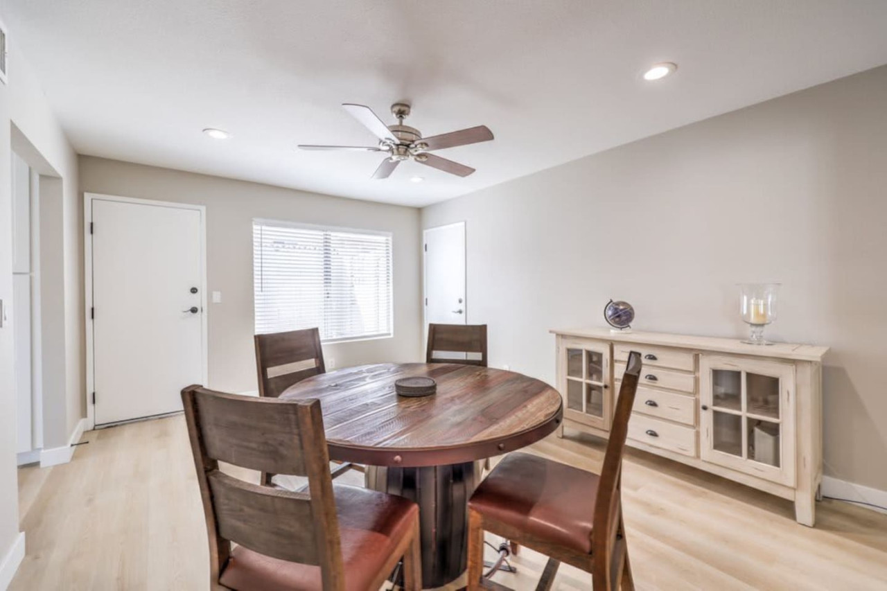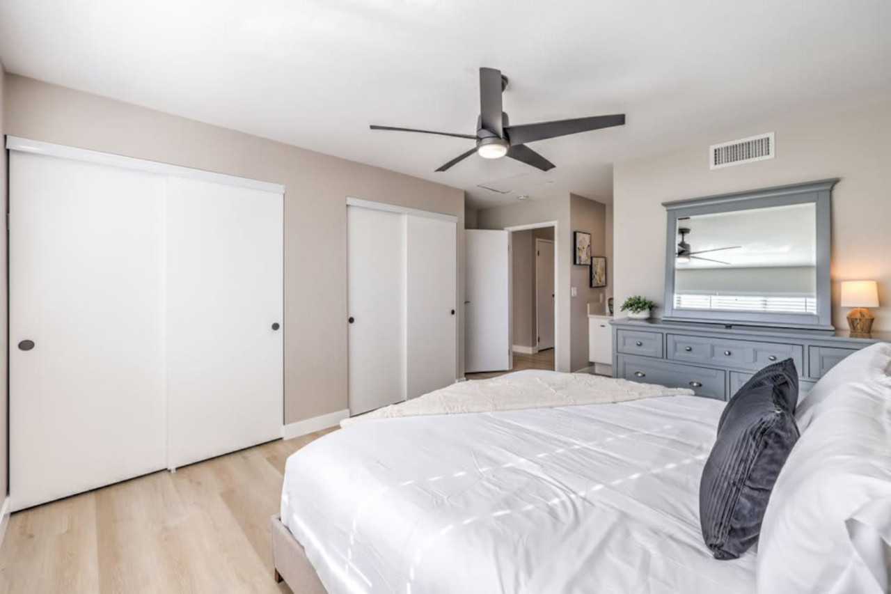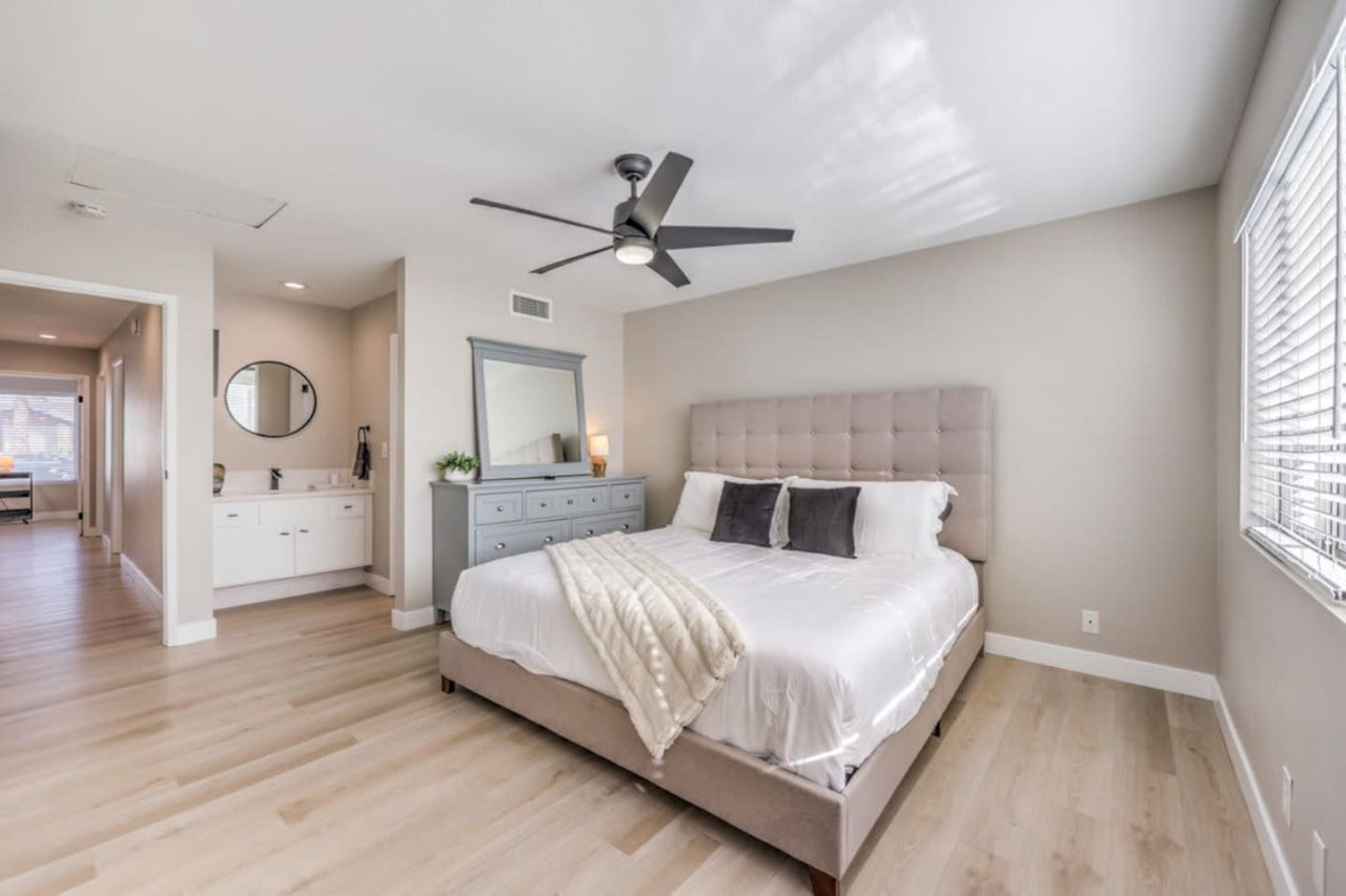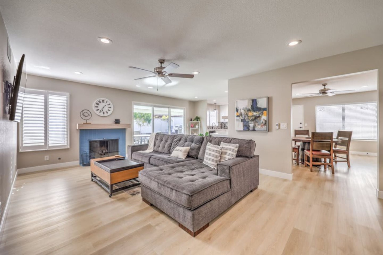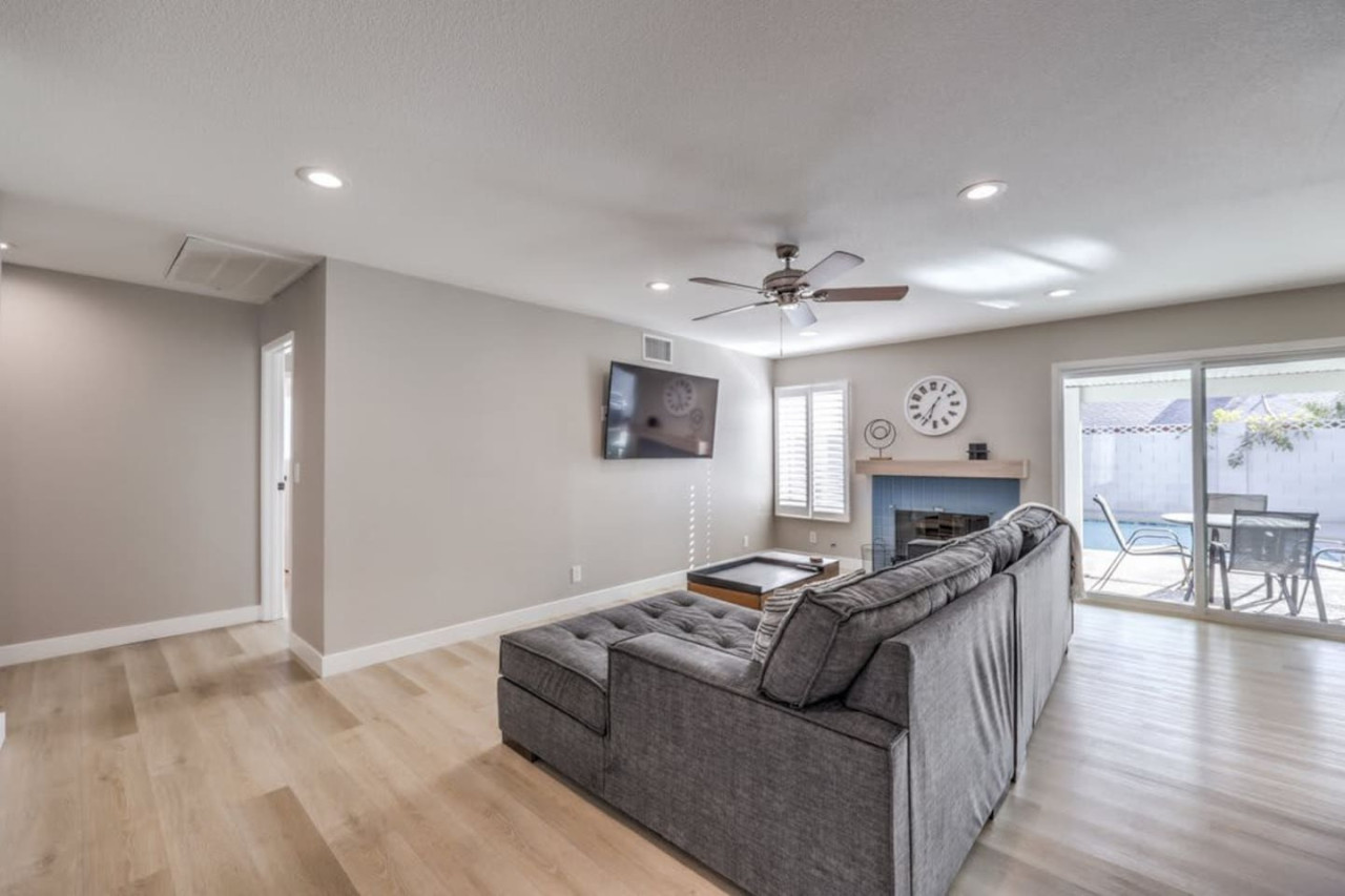 / night❍ 1,509 sqft | 140 sq meters ❍ 3 bedrooms, 2 bathrooms ❍ Sparkling pool and a heated spa ❍ Located in a convenient neighborhood, close-by shopping centers with a variety of stores and restaurants, and more ❍ Close to the Action** A mere 10 minutes away from the vibrant Strip! Welcome to your perfect home-away-from-home! This beautifully designed home offers an ideal blend of comfort, style, and convenience. A fully furnished property available for month-to-month extended stays, offering the ultimate in flexibility and convenience. Modern Kitchen with beautiful quartz, including small appliances. The house features a spacious backyard with a sparkling pool and a heated spa for day & night entertainment. The space ❁ Rules: 1) No Smoking Indoors 2) Pets Must Have Written Approval + Subject to Additional Deposit ╰┈➤ Long term stays (more than 90 days) requires lease ╰┈➤ Application, Lease and Security Deposit. Ask us for details ╰┈➤ Fully refundable security deposit: $3,600 ╰┈➤ Power, water and gas paid by tenant. Owner pays for internet, pool cleaning, and trash. ╰┈➤ Stays under 90 - maximum 5 hours per day Hot Tub usage - Surcharge applied if gas bill exceeds $200 for remaining balance. ╰┈➤ Ask about saving options for tenants Other things to note * We have security cameras facing the street and in the front door. * We have noise monitoring device in the backyard and in the living room. These devices only records the decibels to monitor noise level during quiet hours but NO audio recording. *The fridge is not connected to a waterline due to leak risks. If you need an ice tray, we'll have one delivered within 24 hours. All of them are on 24/7 and for security purposes. There is no camera in private area or anywhere inside the house. Security cameras solely facing the street (as required by the City) * We have security cameras facing the street and in the front door. * We have noise monitoring device in the backyard and in the living room. These devices only records the decibels to monitor noise level during quiet hours but NO audio recording. *The fridge is not connected to a waterline due to leak risks. If you need an ice tray, we'll have one delivered within 24 hours. *The mailbox access or keys are not provided unless the guest has a lease agreement. All of them are on 24/7 and for security purposes. There is no camera in private area or anywhere inside the house. Security cameras solely facing the street (as required by the City)